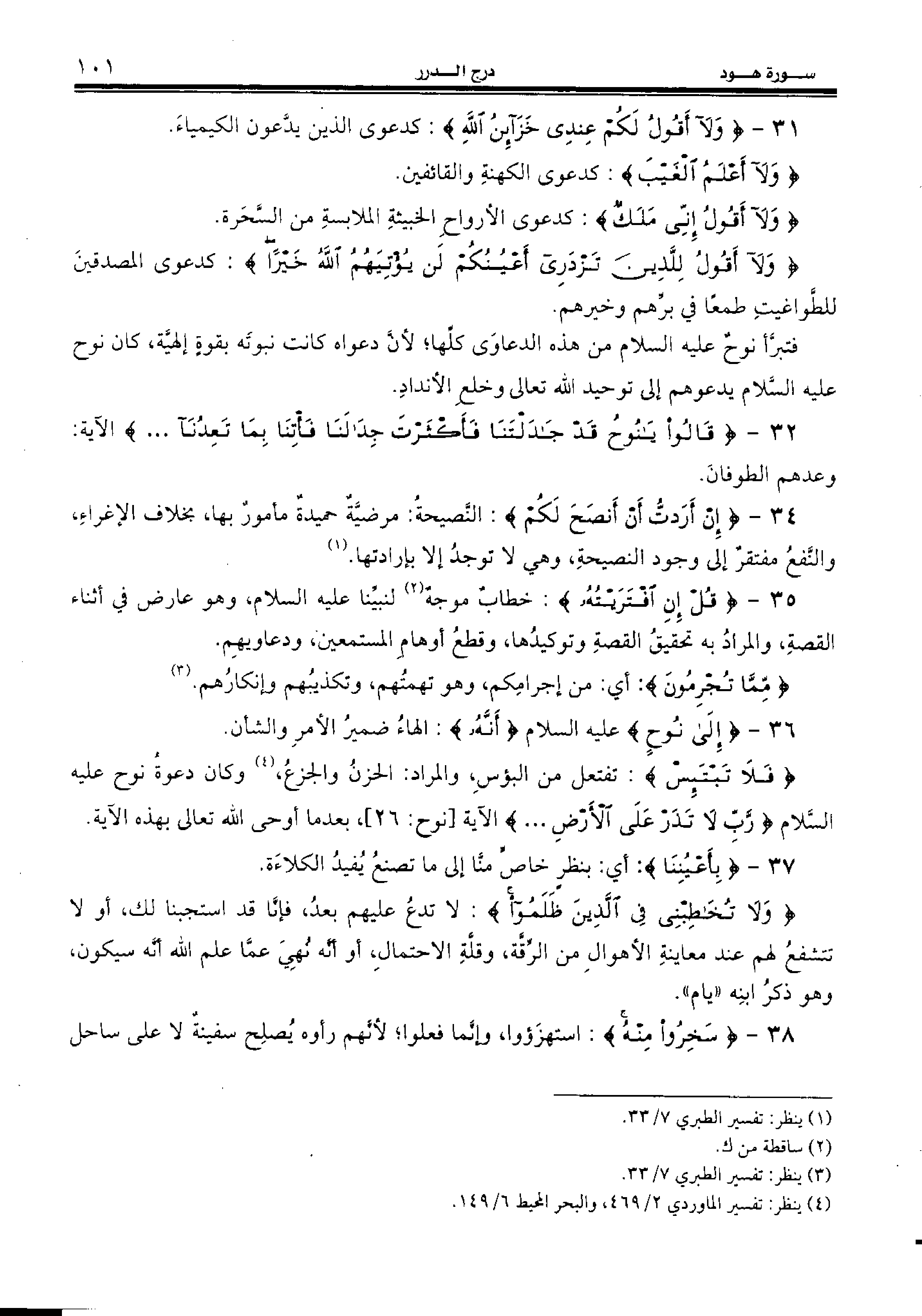 34 - {إِنْ أَرَدْتُ أَنْ أَنْصَحَ لَكُمْ:} النّصيحة: مرضيّة حميدة مأمور بها، بخلاف الإغراء، والنّفع مفتقر إلى وجود النصيحة، وهي لا توجد إلا بإرادتها. (¬1)