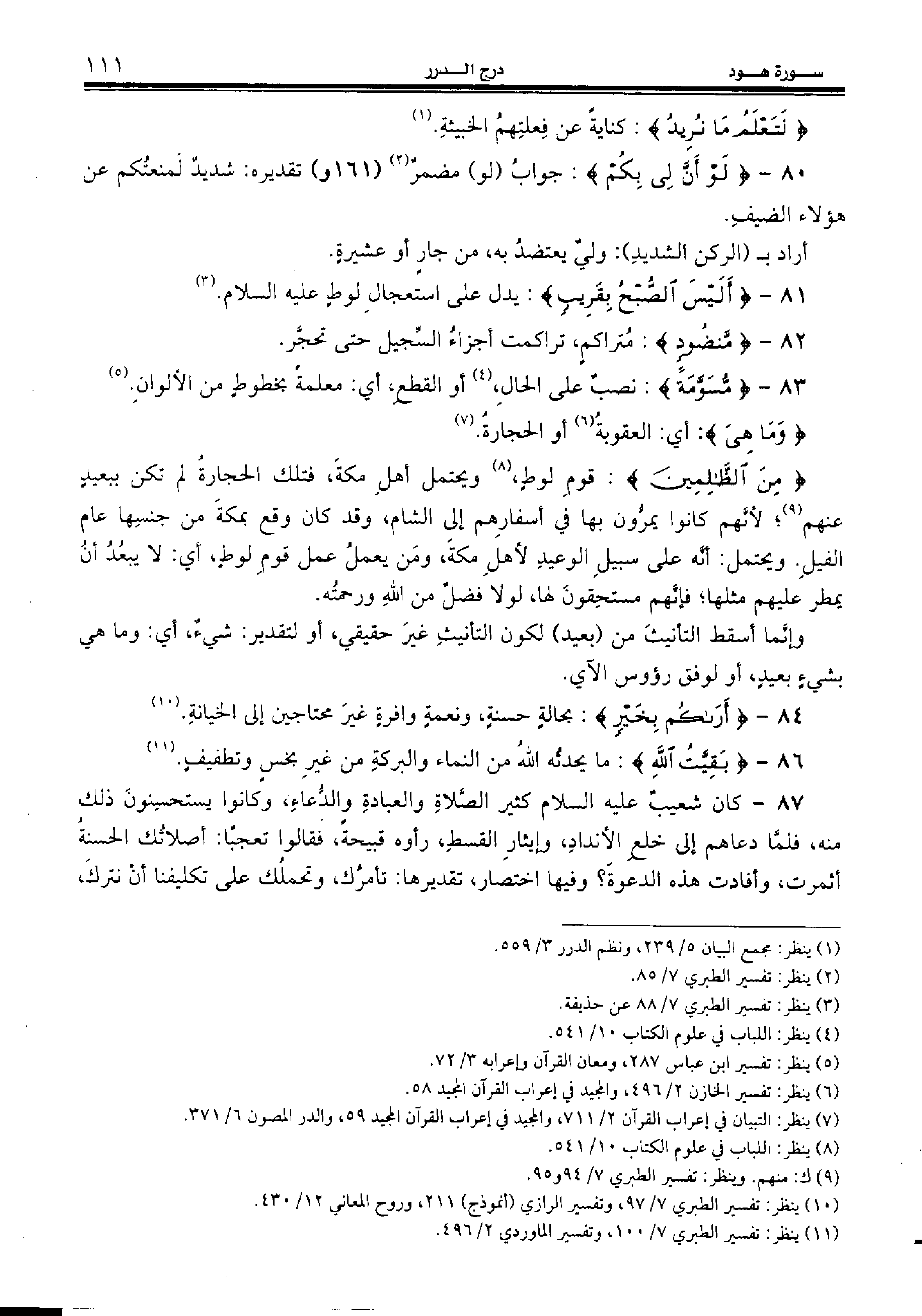 81 - {أَلَيْسَ الصُّبْحُ بِقَرِيبٍ:} يدل على استعجال لوط عليه السّلام. (¬3)