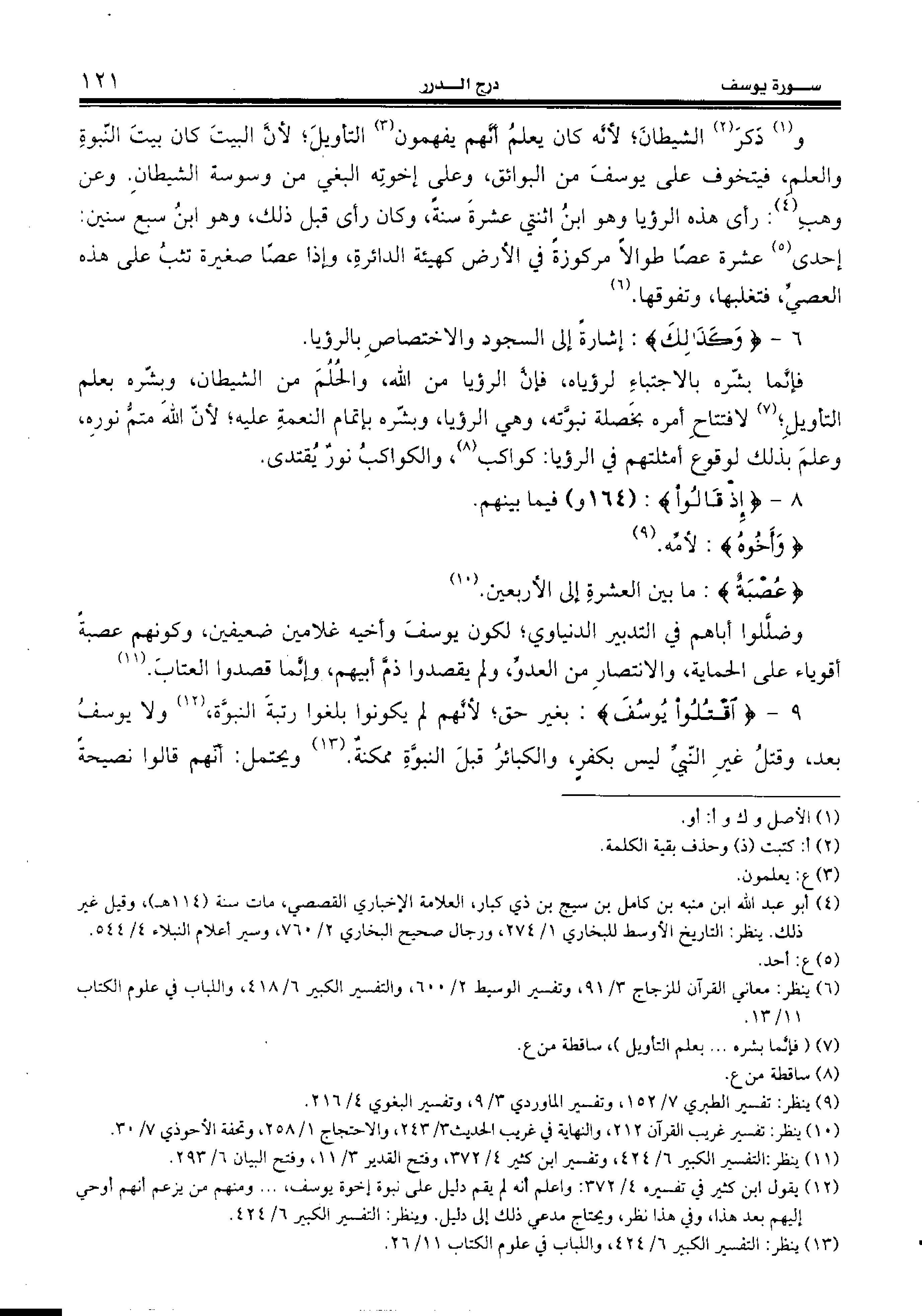 (¬12) يقول ابن كثير في تفسيره 4/ 372: واعلم أنه لم يقم دليل على نبوة إخوة يوسف،. . . ومنهم من يزعم أنهم أوحي إليهم بعد هذا، وفي هذا نظر، ويحتاج مدعي ذلك إلى دليل. وينظر: التفسير الكبير 6/ 424.