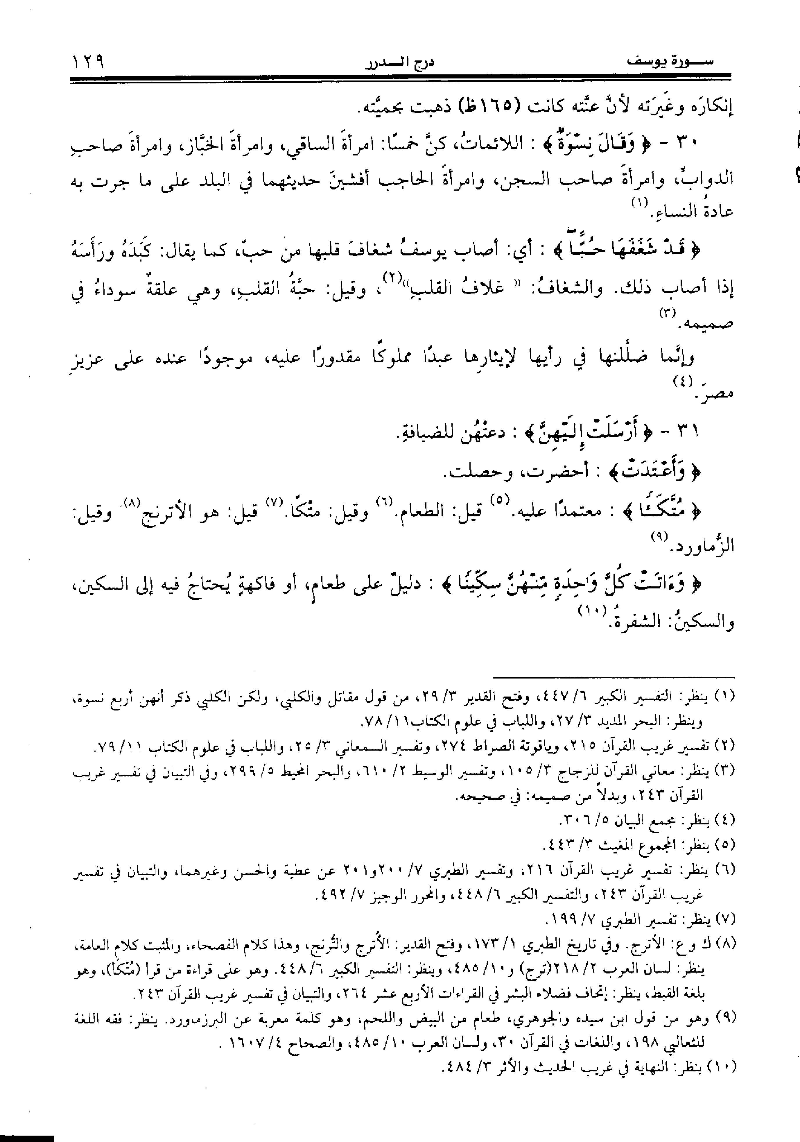 {مُتَّكَأً:} معتمدا عليه. (¬5) قيل: الطعام. (¬6) وقيل: متكا. (¬7) قيل: هو الأترنج (¬8) وقيل: