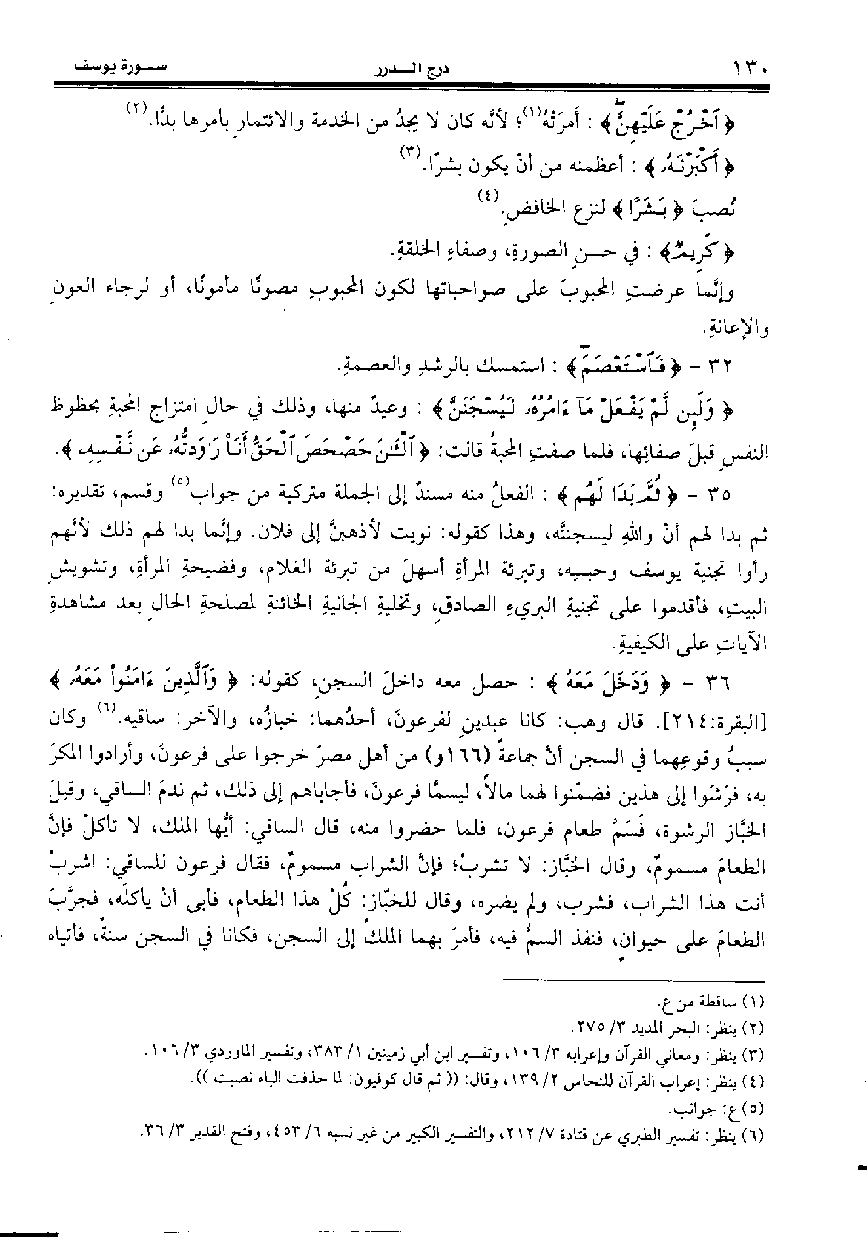 35 - {ثُمَّ بَدا لَهُمْ:} الفعل منه مسند إلى الجملة متركبة من جواب (¬5) وقسم، تقديره: