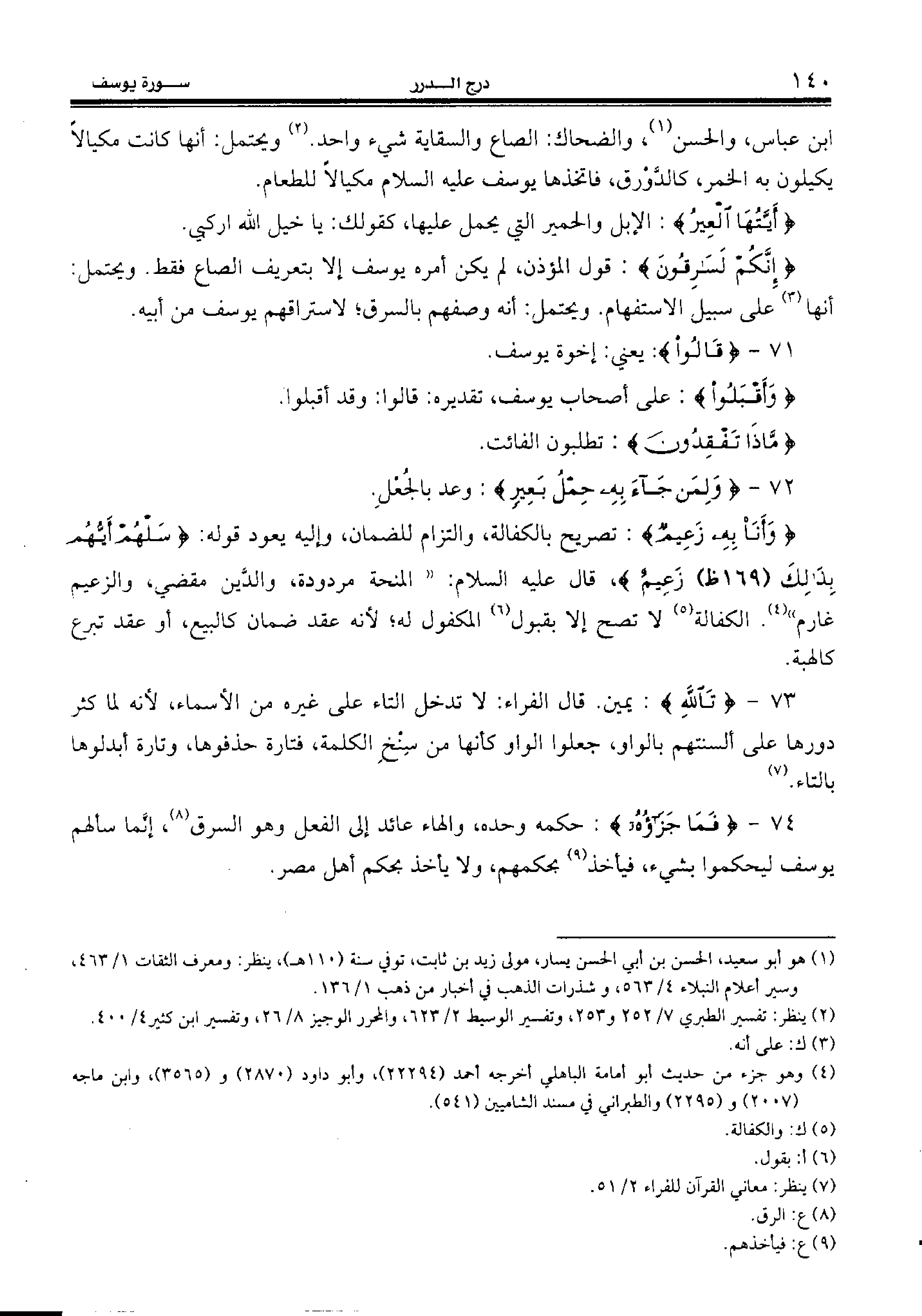 72 - {وَلِمَنْ جاءَ بِهِ حِمْلُ بَعِيرٍ:} وعد بالجعل.