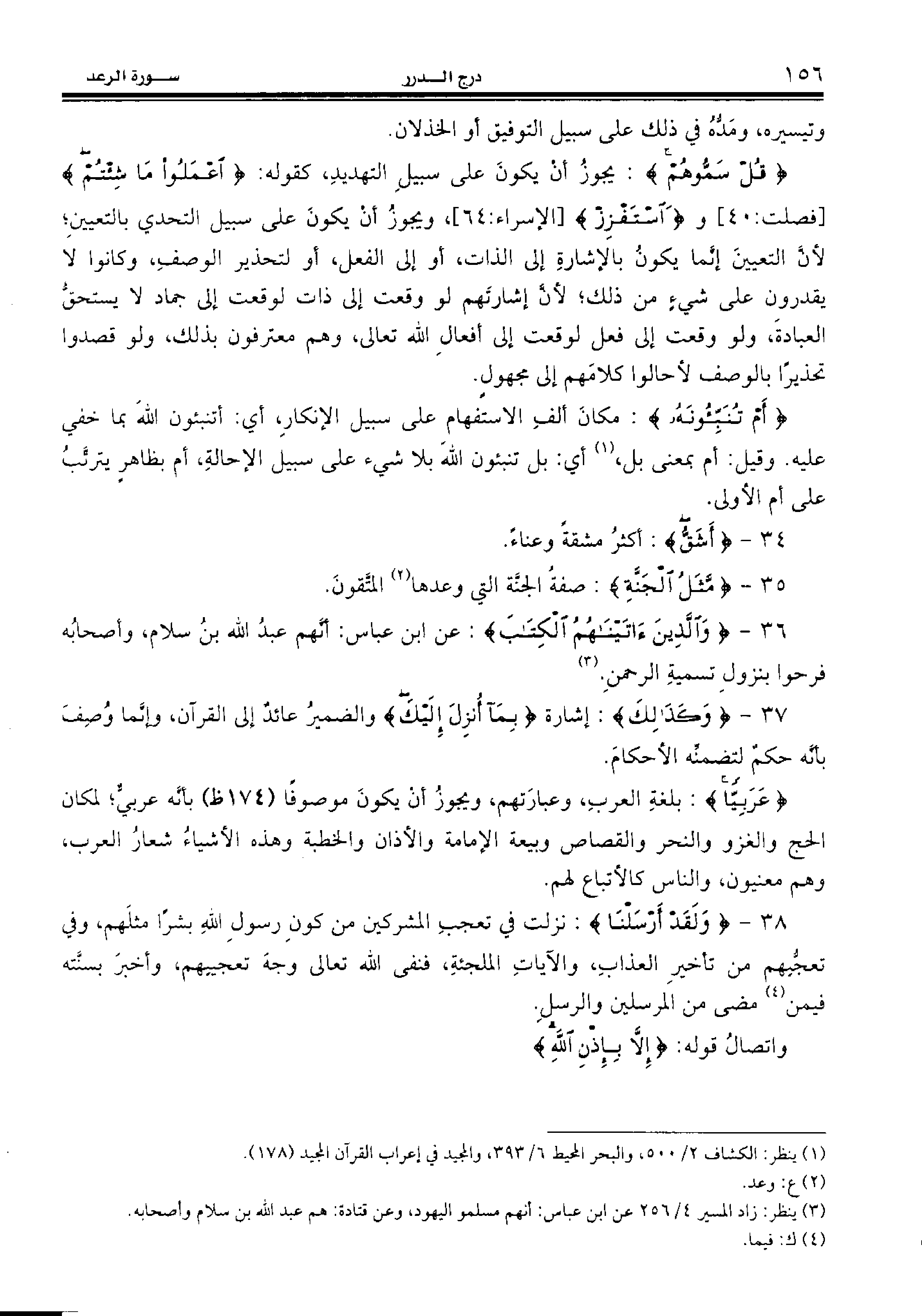 (¬1) ينظر: الكشاف 2/ 500، والبحر المحيط 6/ 393، والمجيد في إعراب القرآن المجيد (178).