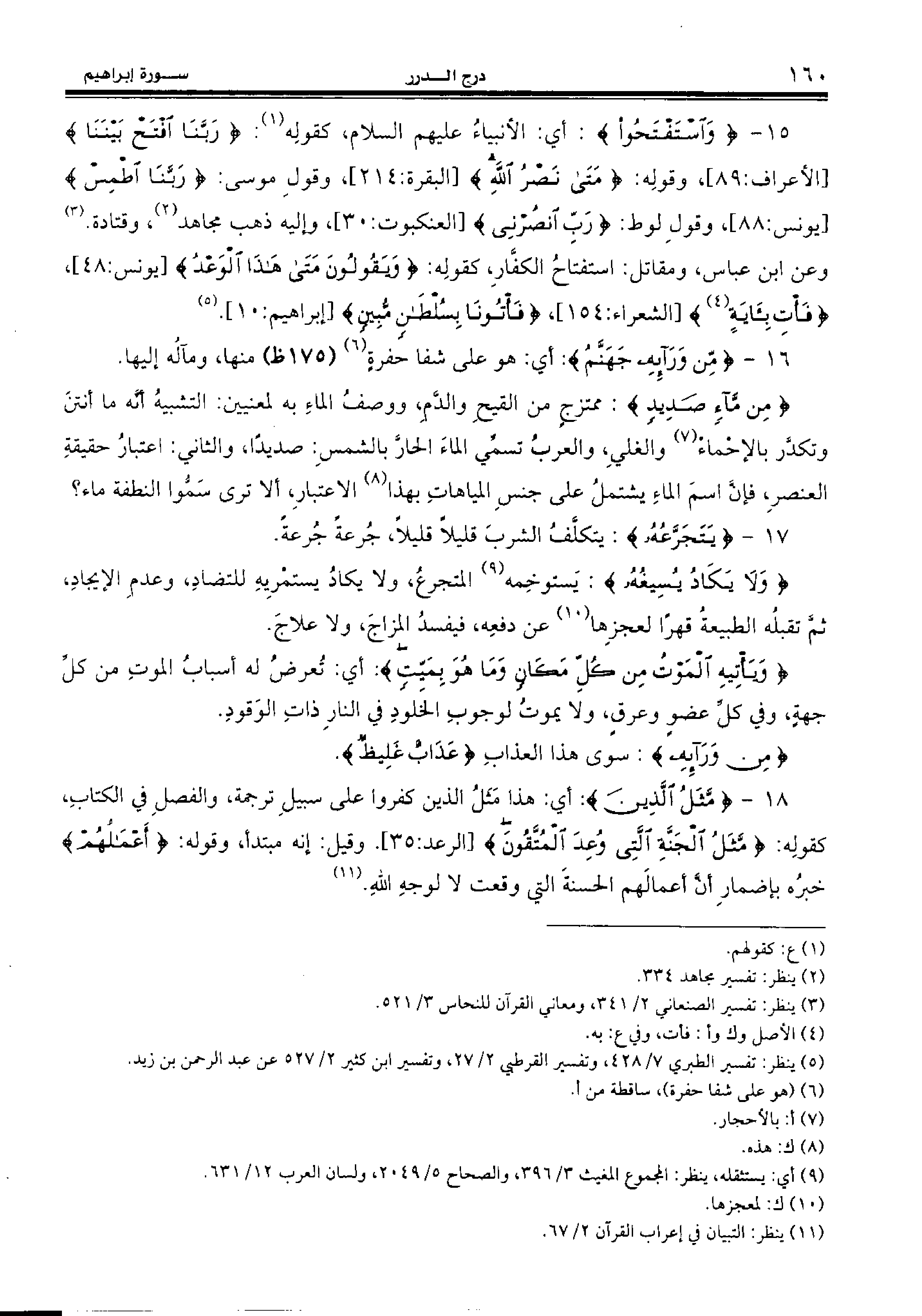 18 - {مَثَلُ الَّذِينَ:} أي: هذا مثل الذين كفروا على سبيل ترجمة، والفصل في الكتاب، كقوله: {مَثَلُ الْجَنَّةِ الَّتِي وُعِدَ الْمُتَّقُونَ} [الرعد:35]. وقيل: إنه مبتدأ، وقوله: {أَعْمالُهُمْ} خبره بإضمار أنّ أعمالهم الحسنة التي وقعت لا لوجه الله. (¬11)