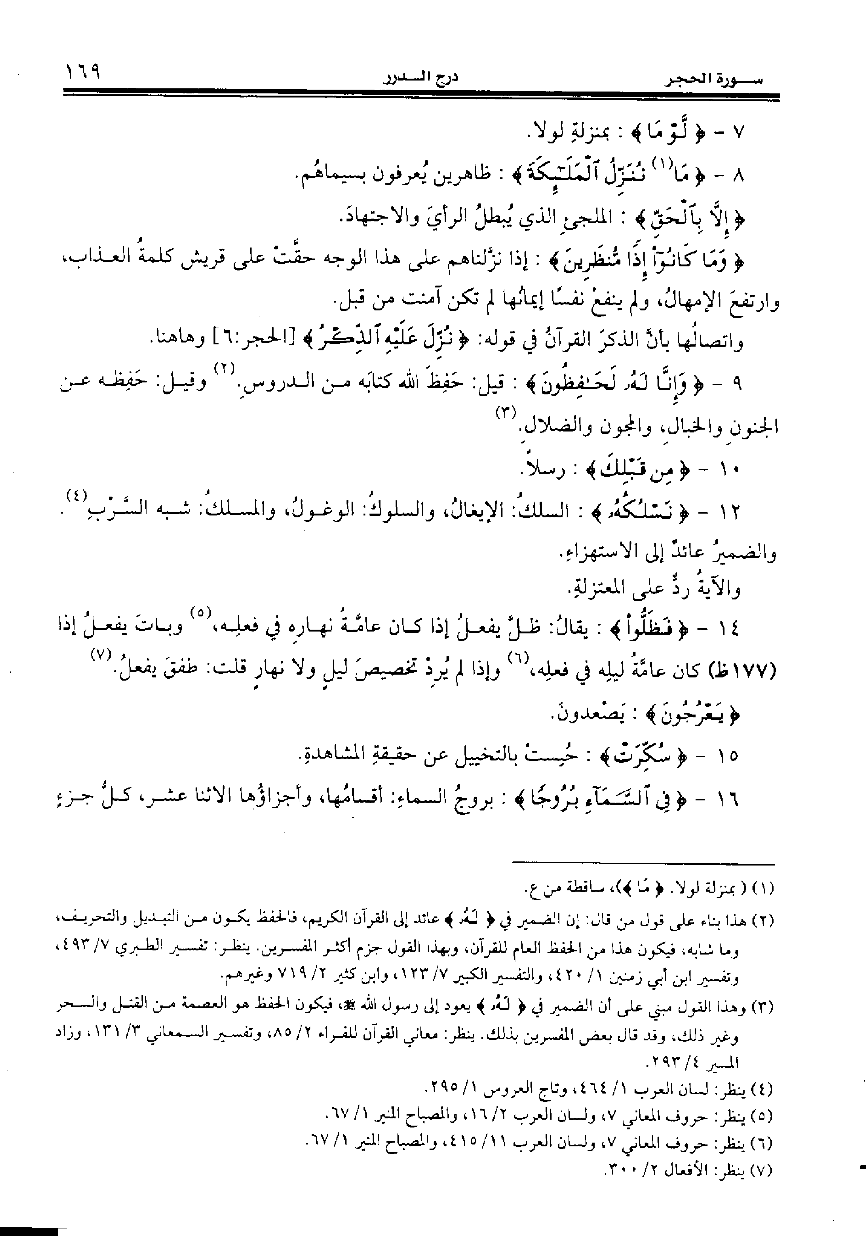 9 - {وَإِنّا لَهُ لَحافِظُونَ:} قيل: حفظ الله كتابه من الدروس. (¬2) وقيل: حفظه عن الجنون والخبال، والمجون والضلال. (¬3)