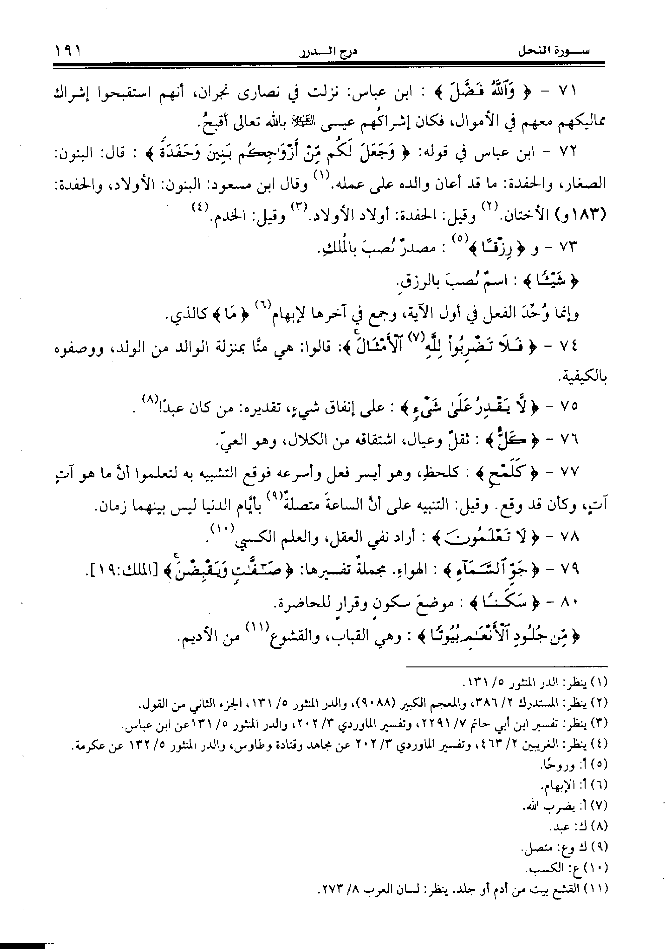 72 - ابن عباس في قوله: {وَجَعَلَ لَكُمْ مِنْ أَزْواجِكُمْ بَنِينَ وَحَفَدَةً:} قال: البنون: