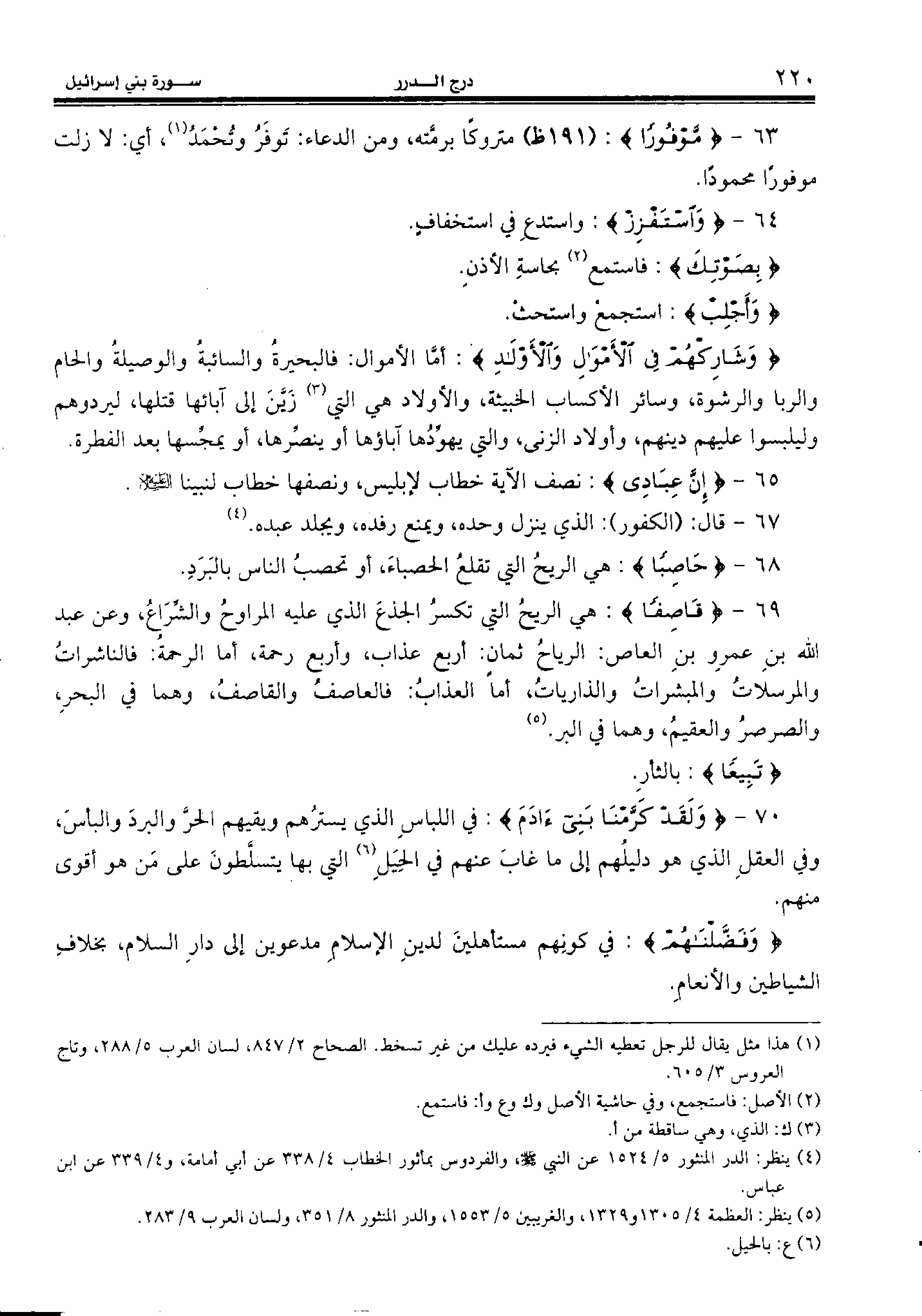(¬5) ينظر: العظمة 4/ 1305 و 1329، والغريبين 5/ 1553، والدر المنثور 8/ 351، ولسان العرب 9/ 283.