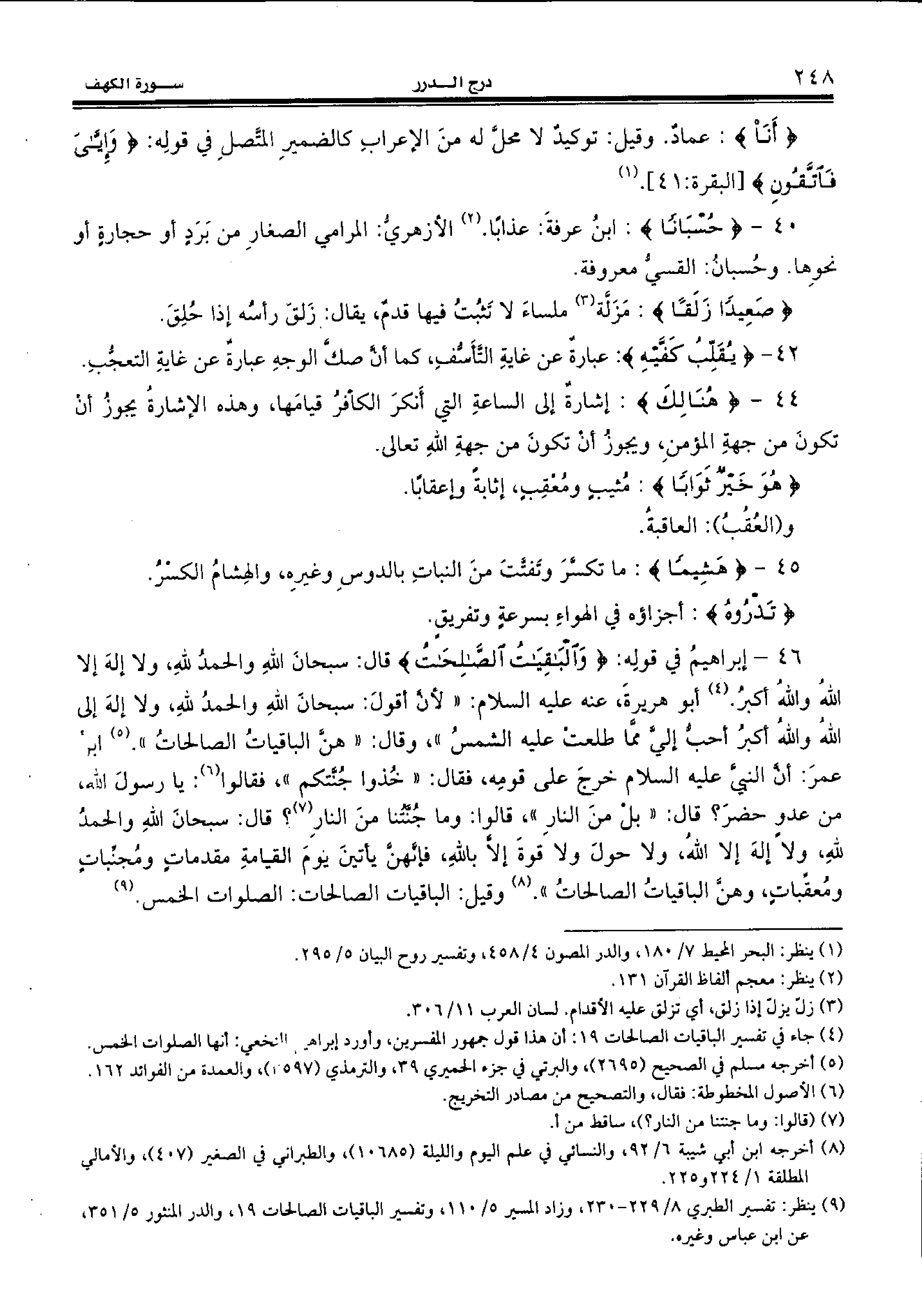 (¬4) جاء في تفسير الباقيات الصالحات 19: أن هذا قول جمهور المفسرين، وأورد إبراهيم النخعي: أنها الصلوات الخمس.