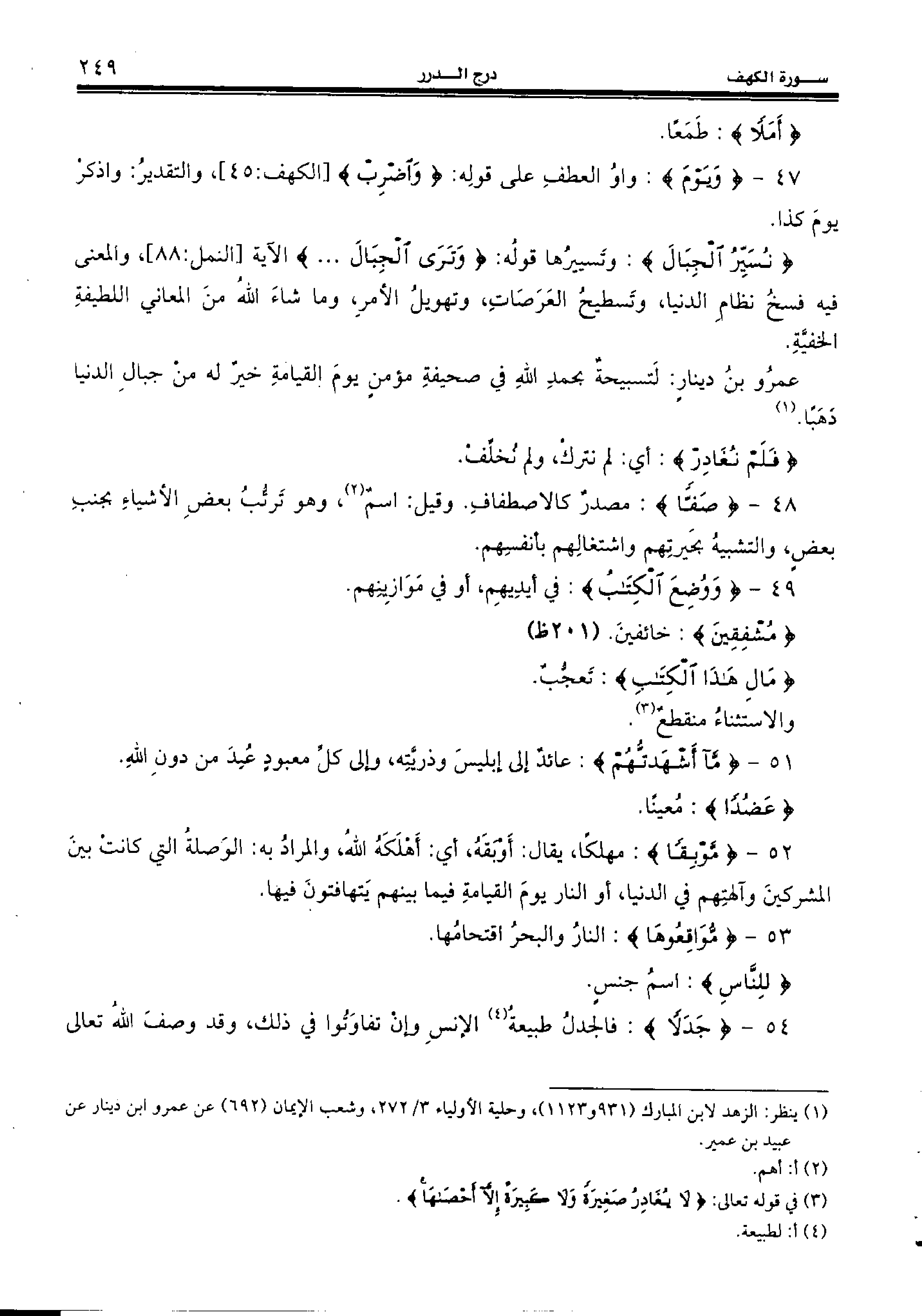 (¬3) في قوله تعالى: لا يُغادِرُ صَغِيرَةً وَلا كَبِيرَةً إِلاّ أَحْصاها.