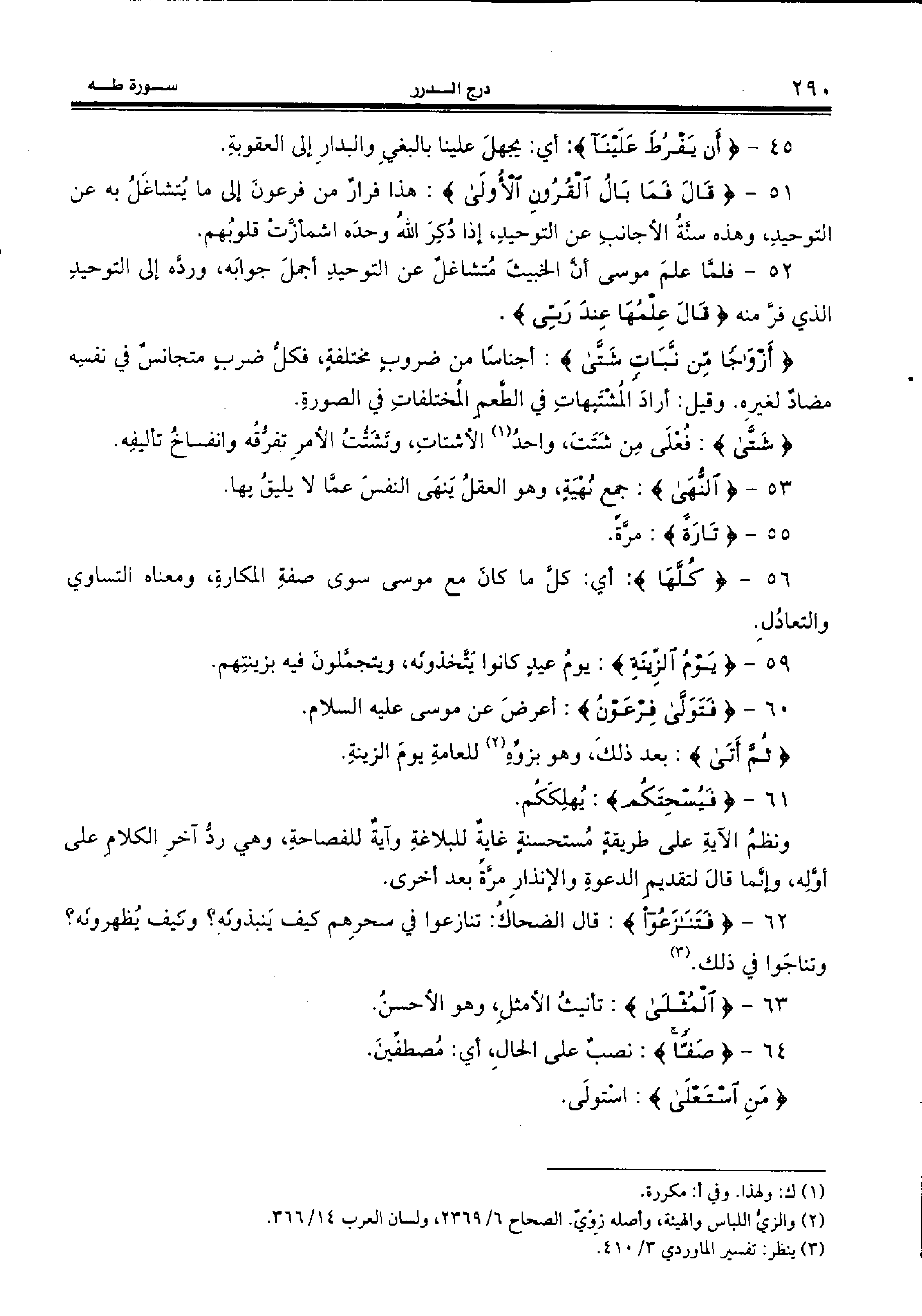 52 - فلمّا علم موسى أنّ الخبيث متشاغل عن التوحيد أجمل جوابه، وردّه إلى التوحيد الذي فرّ منه {قالَ عِلْمُها عِنْدَ رَبِّي.}