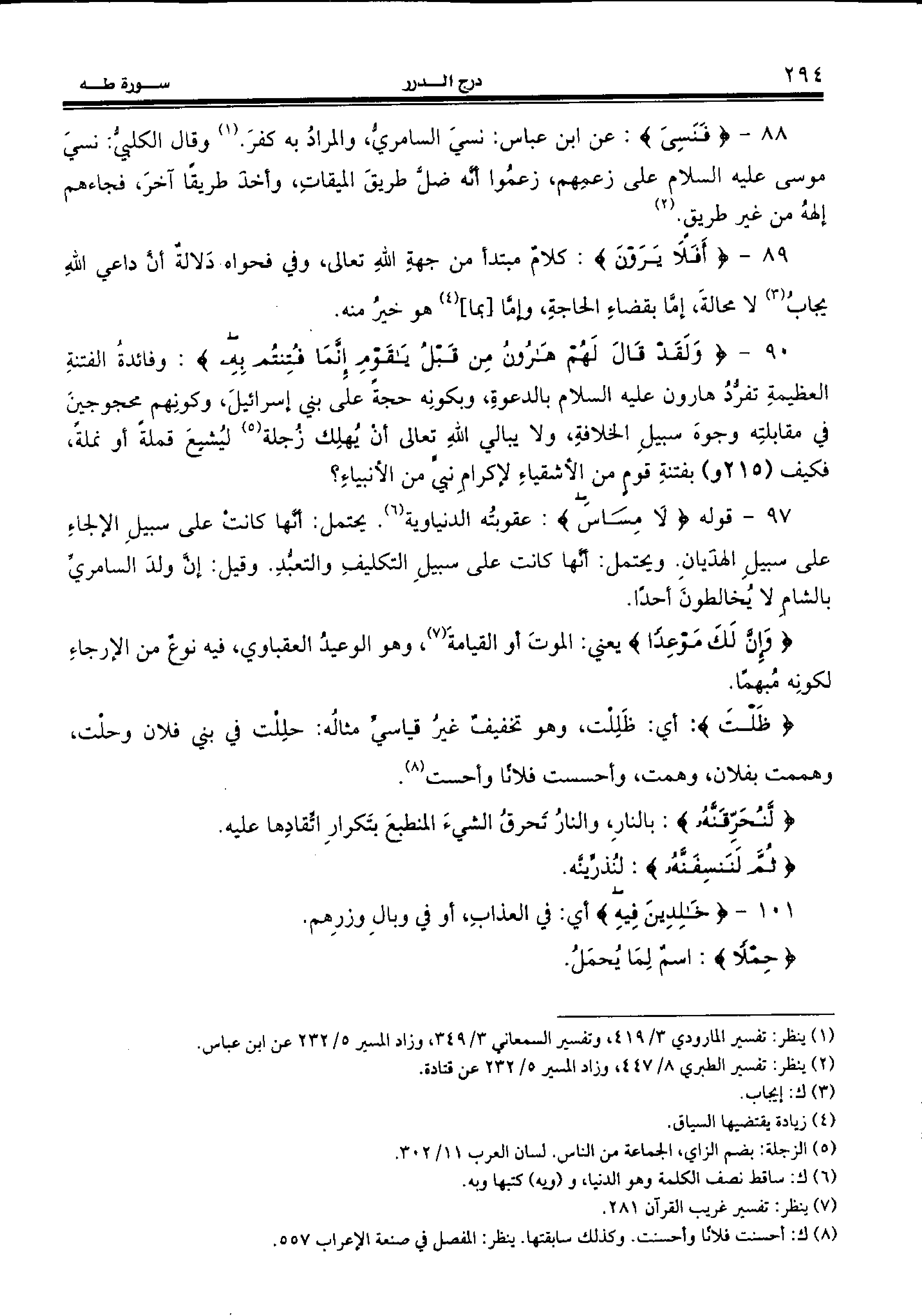 88 - {فَنَسِيَ:} عن ابن عباس: نسي السامريّ، والمراد به كفر. (¬1) وقال الكلبيّ: نسي موسى عليه السّلام على زعمهم، زعموا أنّه ضلّ طريق الميقات، وأخذ طريقا آخر، فجاءهم إلهه من غير طريق. (¬2)