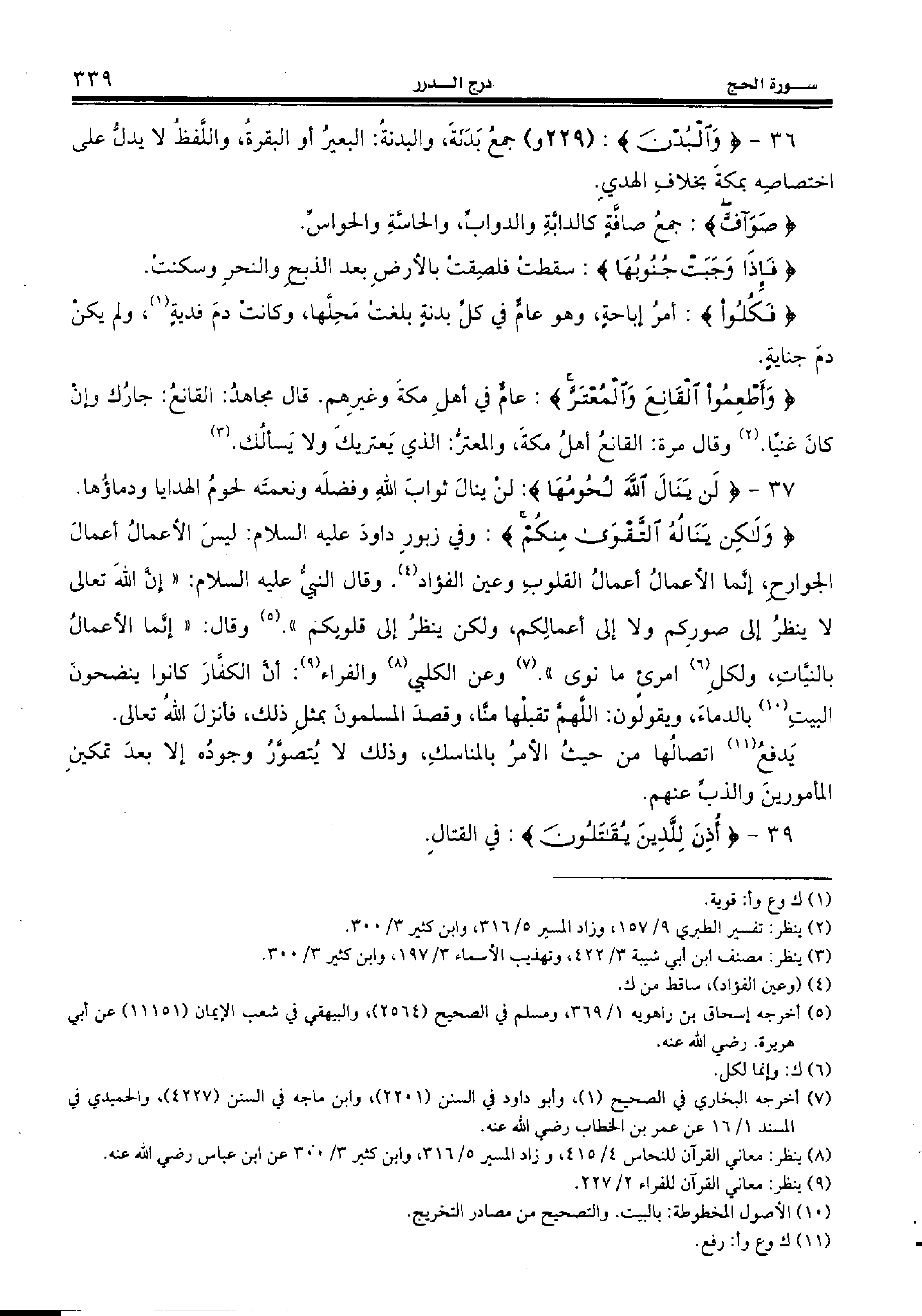 36 - {وَالْبُدْنَ:} (229 و) جمع بدنة، والبدنة: البعير أو البقرة، واللّفظ لا يدلّ على اختصاصه بمكة بخلاف الهدي.