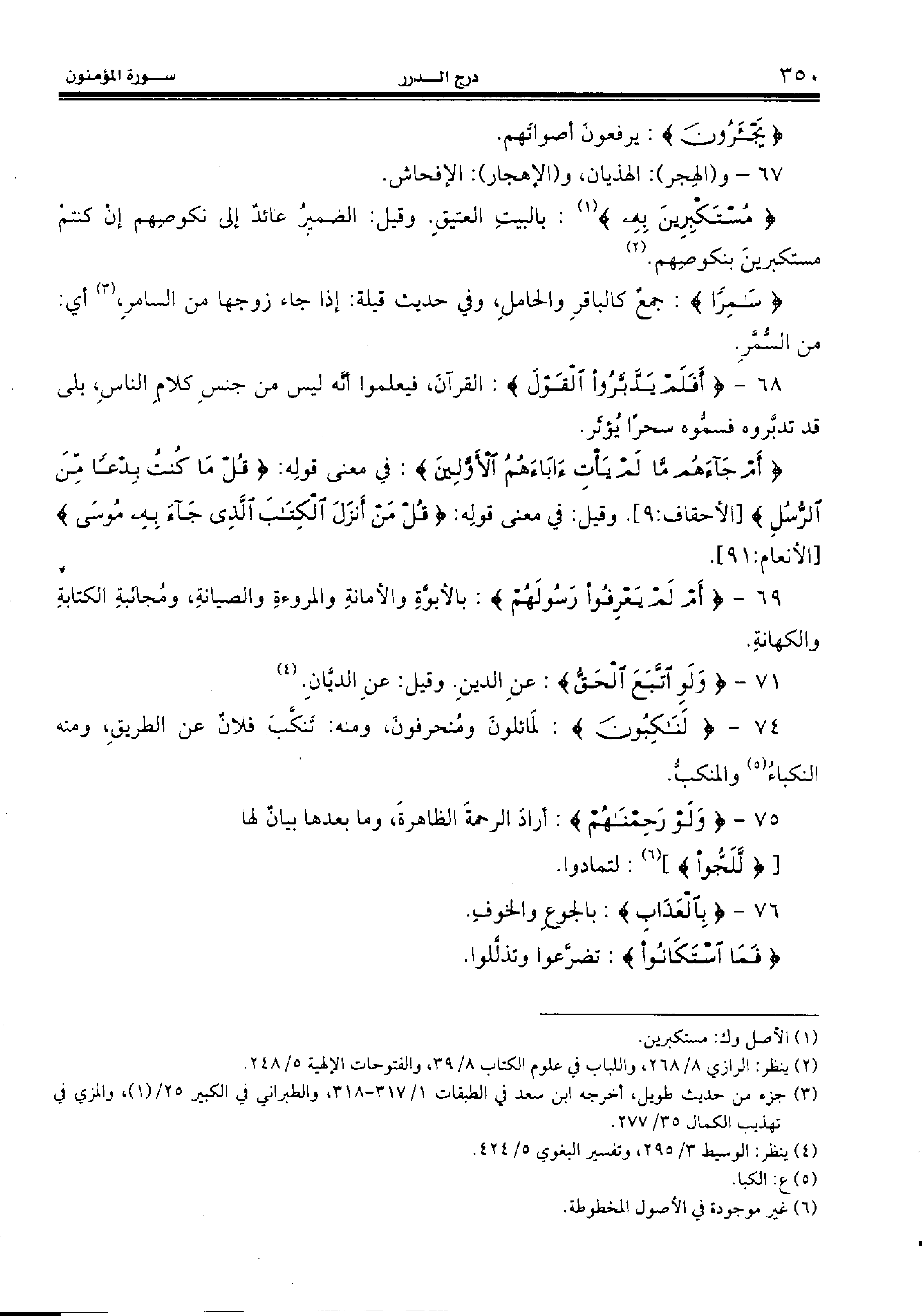 (¬2) ينظر: الرازي 8/ 268، واللباب في علوم الكتاب 8/ 39، والفتوحات الإلهية 5/ 248.