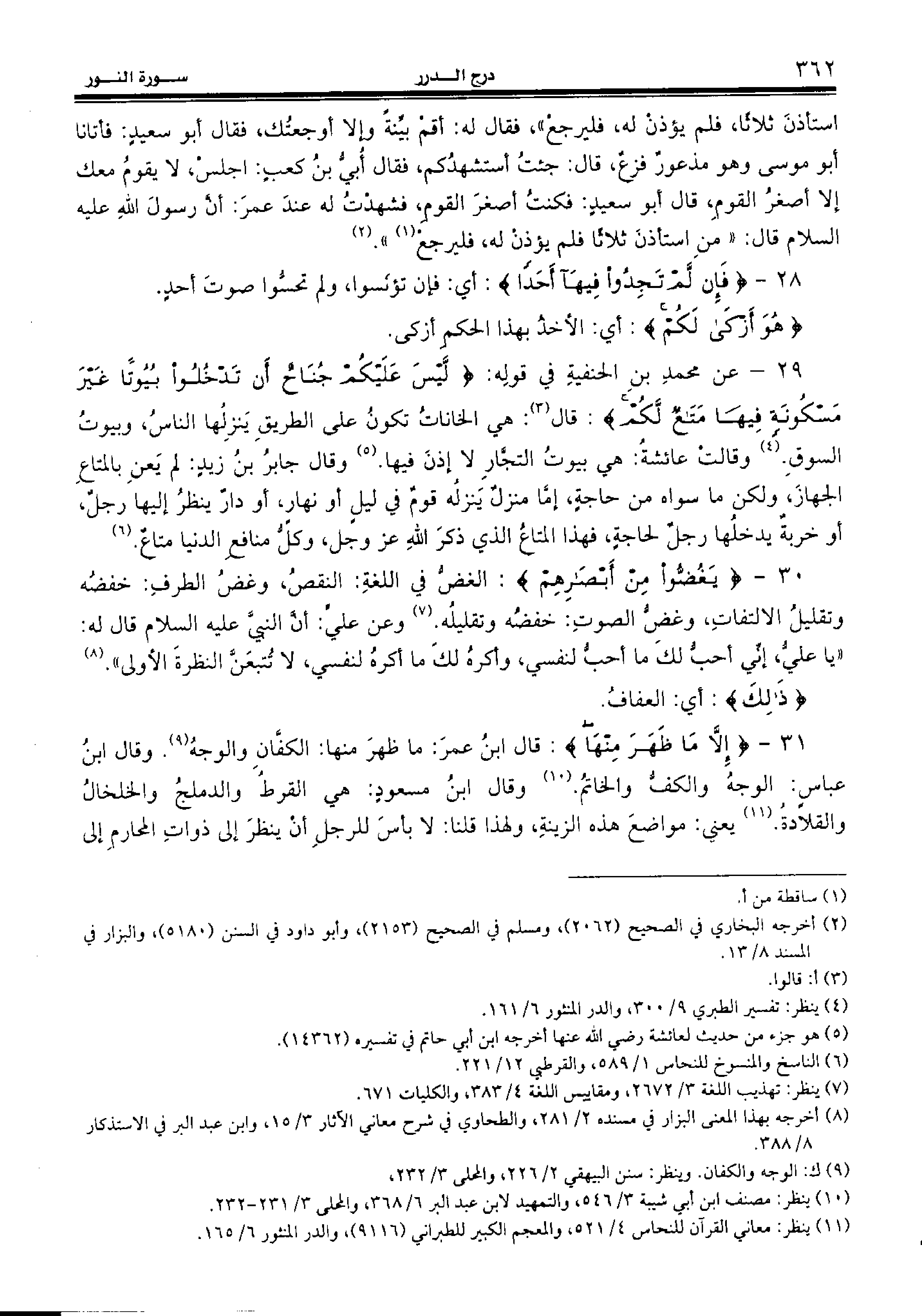 30 - {يَغُضُّوا مِنْ أَبْصارِهِمْ:} الغضّ في اللغة: النقص، وغض الطرف: خفضه وتقليل الالتفات، وغضّ الصوت: خفضه وتقليله. (¬7) وعن عليّ: أنّ النبيّ عليه السّلام قال له: