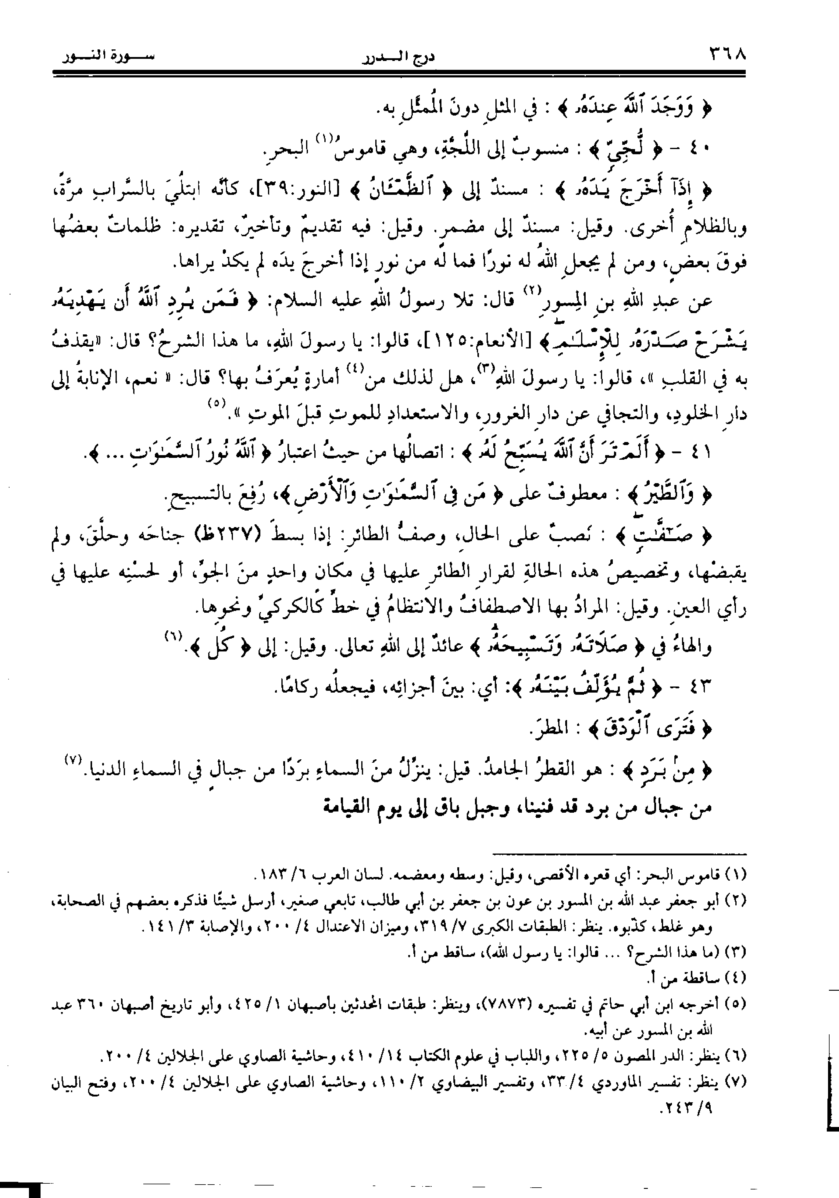 (¬6) ينظر: الدر المصون 5/ 225، واللباب في علوم الكتاب 14/ 410، وحاشية الصاوي على الجلالين 4/ 200.