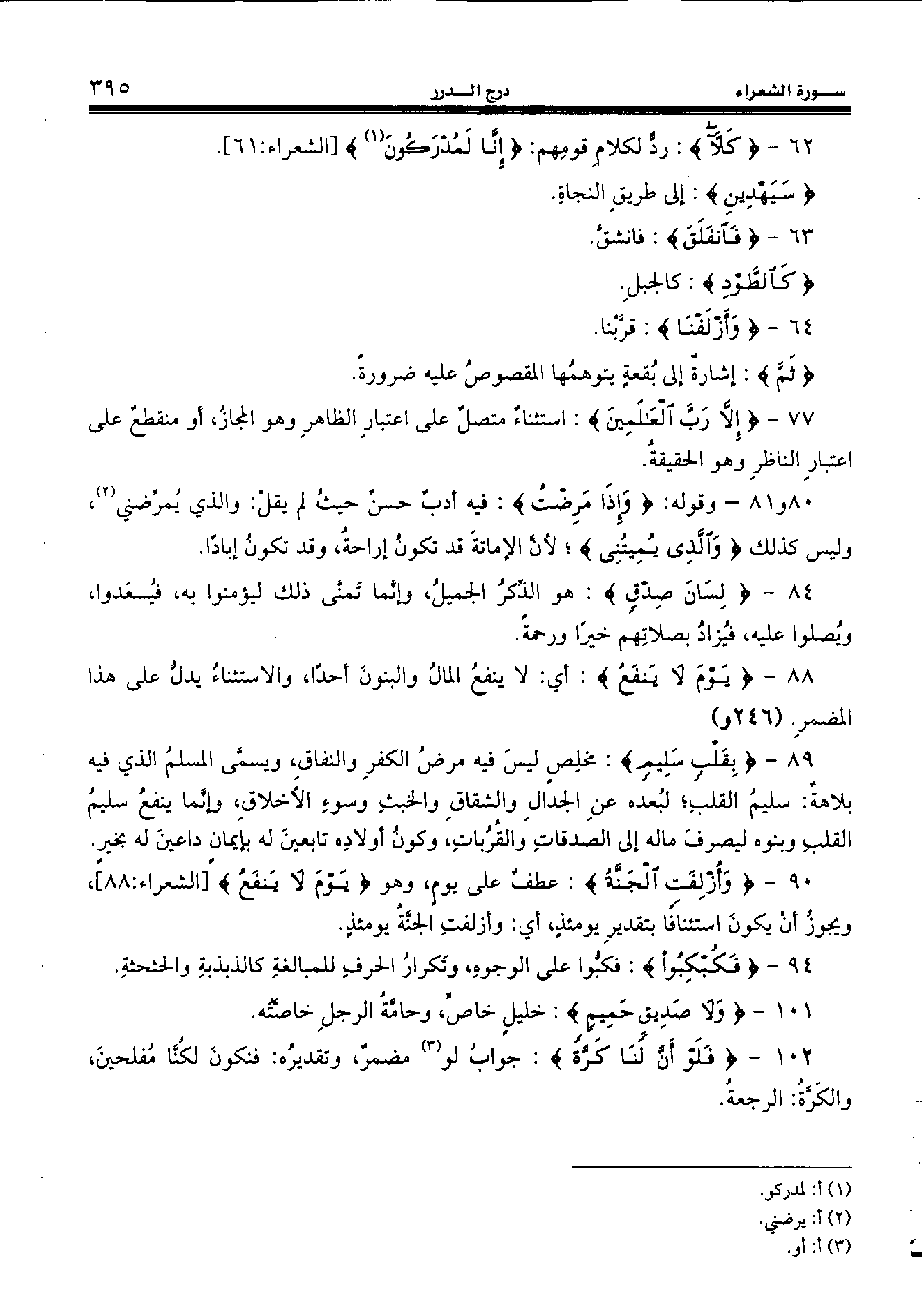89 - {بِقَلْبٍ سَلِيمٍ:} مخلص ليس فيه مرض الكفر والنفاق، ويسمّى المسلم الذي فيه بلاهة: سليم القلب؛ لبعده عن الجدال والشقاق والخبث وسوء الأخلاق، وإنّما ينفع سليم القلب وبنوه ليصرف ماله إلى الصدقات والقربات، وكون أولاده تابعين له بإيمان داعين له بخير.