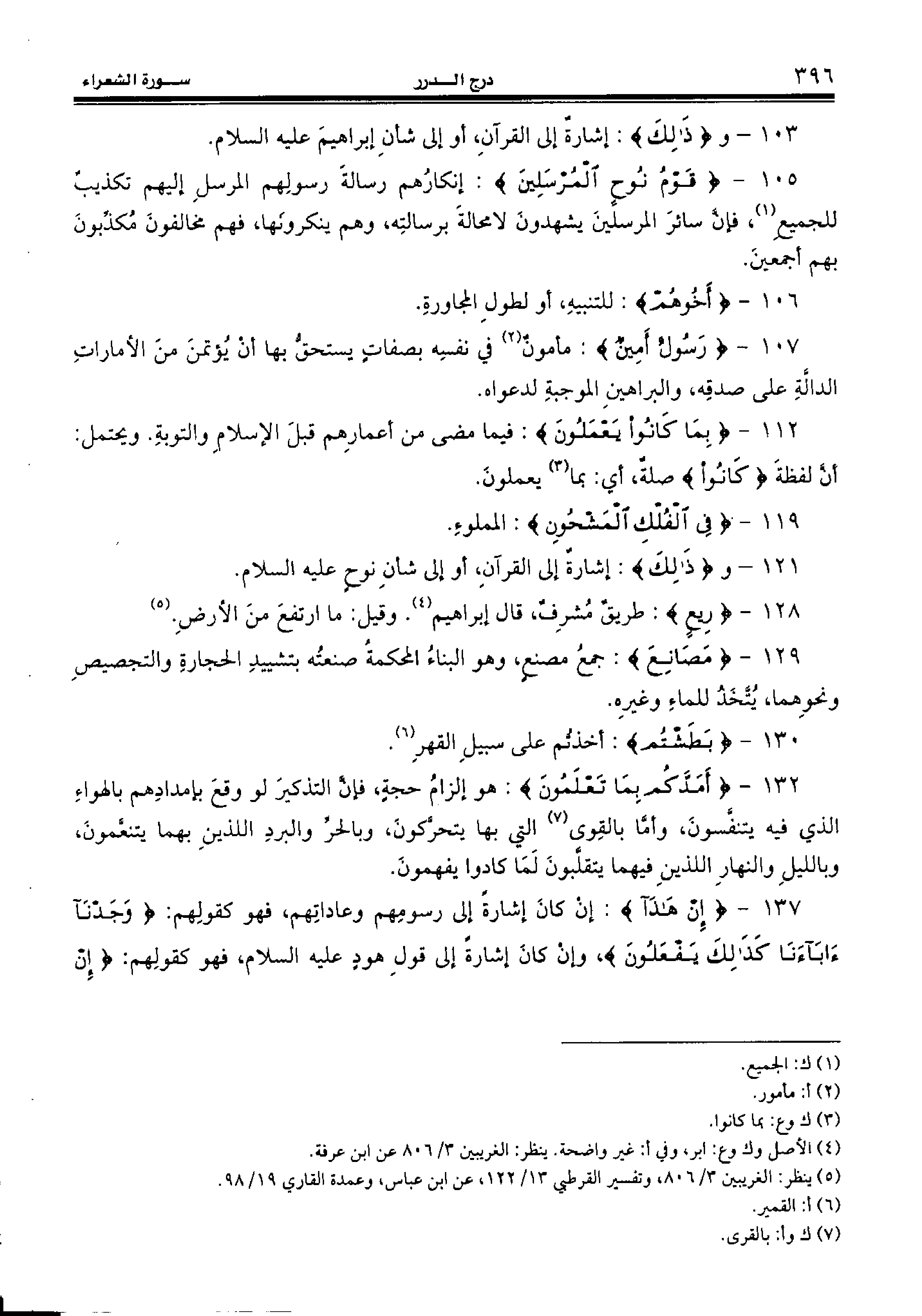 132 - {أَمَدَّكُمْ بِما تَعْلَمُونَ:} هو إلزام حجة، فإنّ التذكير لو وقع بإمدادهم بالهواء الذي فيه يتنفّسون، وأمّا بالقوى (¬7) التي بها يتحرّكون، وبالحرّ والبرد اللذين بهما يتنعّمون، وبالليل والنهار اللذين فيهما يتقلّبون لما كادوا يفهمون.