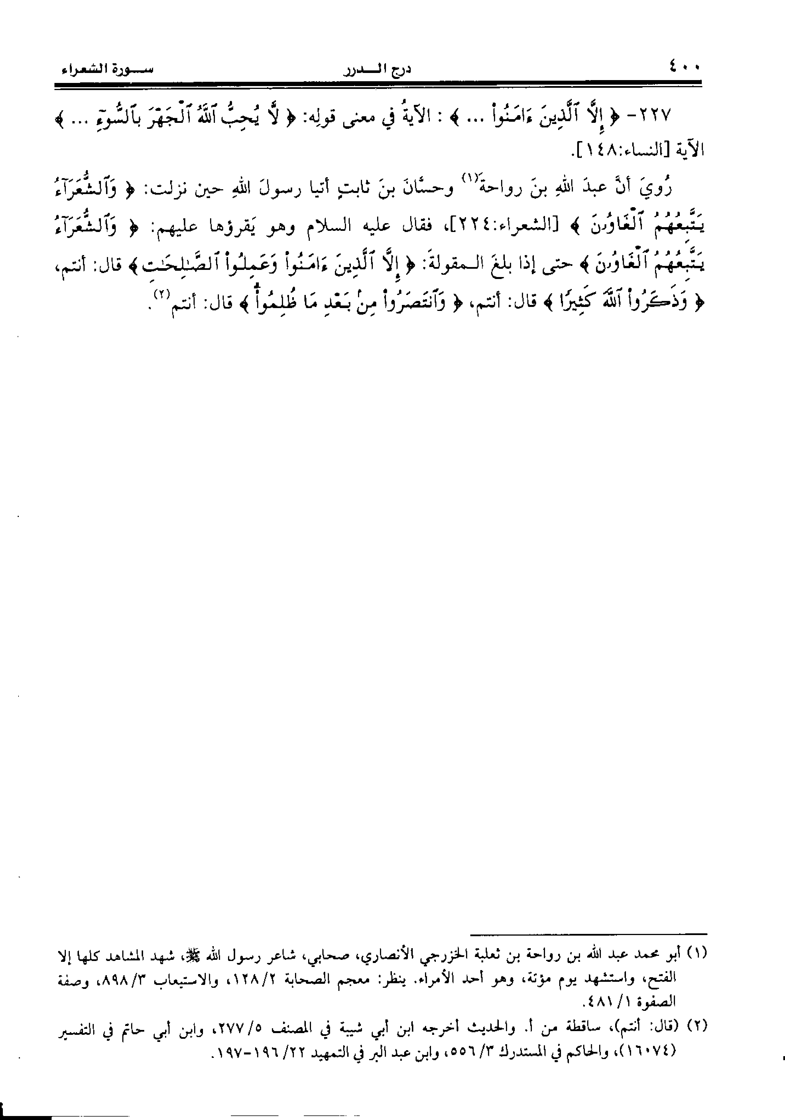 227 - {إِلاَّ الَّذِينَ آمَنُوا. . .:} الآية في معنى قوله: {لا يُحِبُّ اللهُ الْجَهْرَ بِالسُّوءِ. . .}