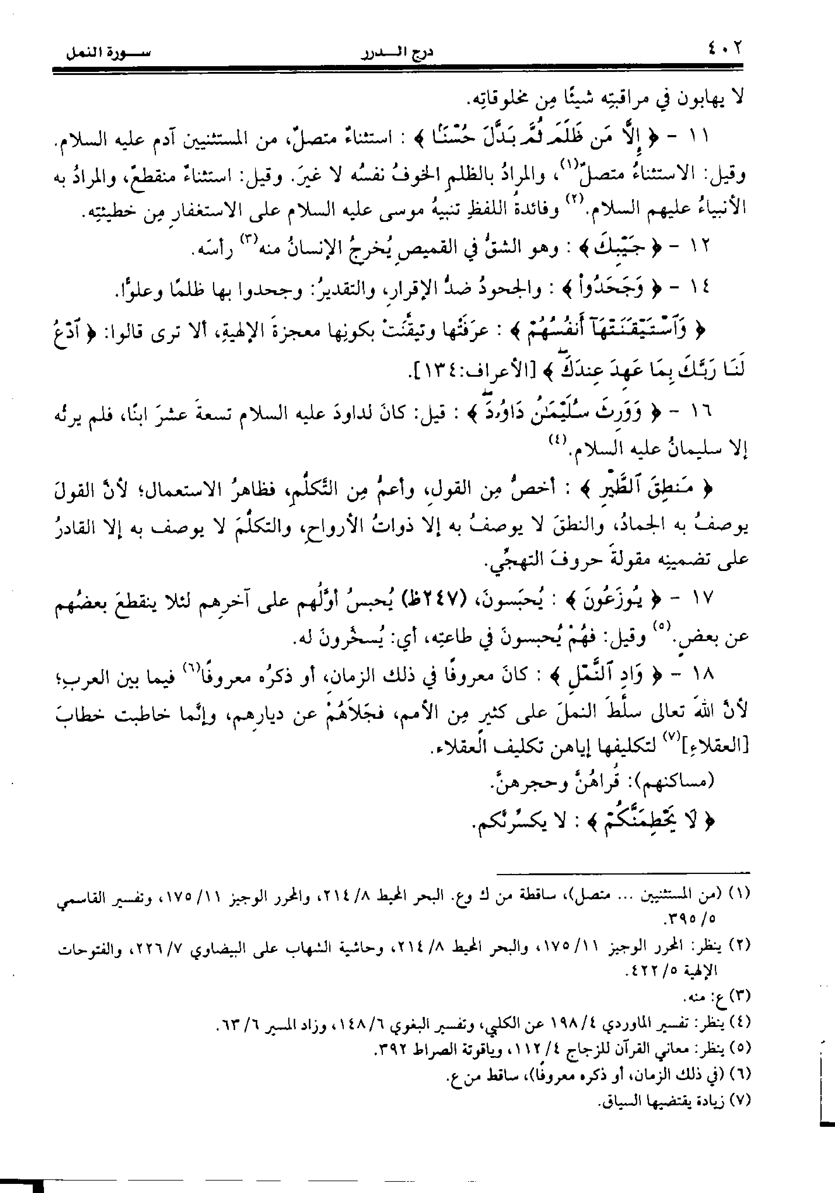 (¬2) ينظر: المحرر الوجيز 11/ 175، والبحر المحيط 8/ 214، وحاشية الشهاب على البيضاوي 7/ 226، والفتوحات الإلهية 5/ 422.