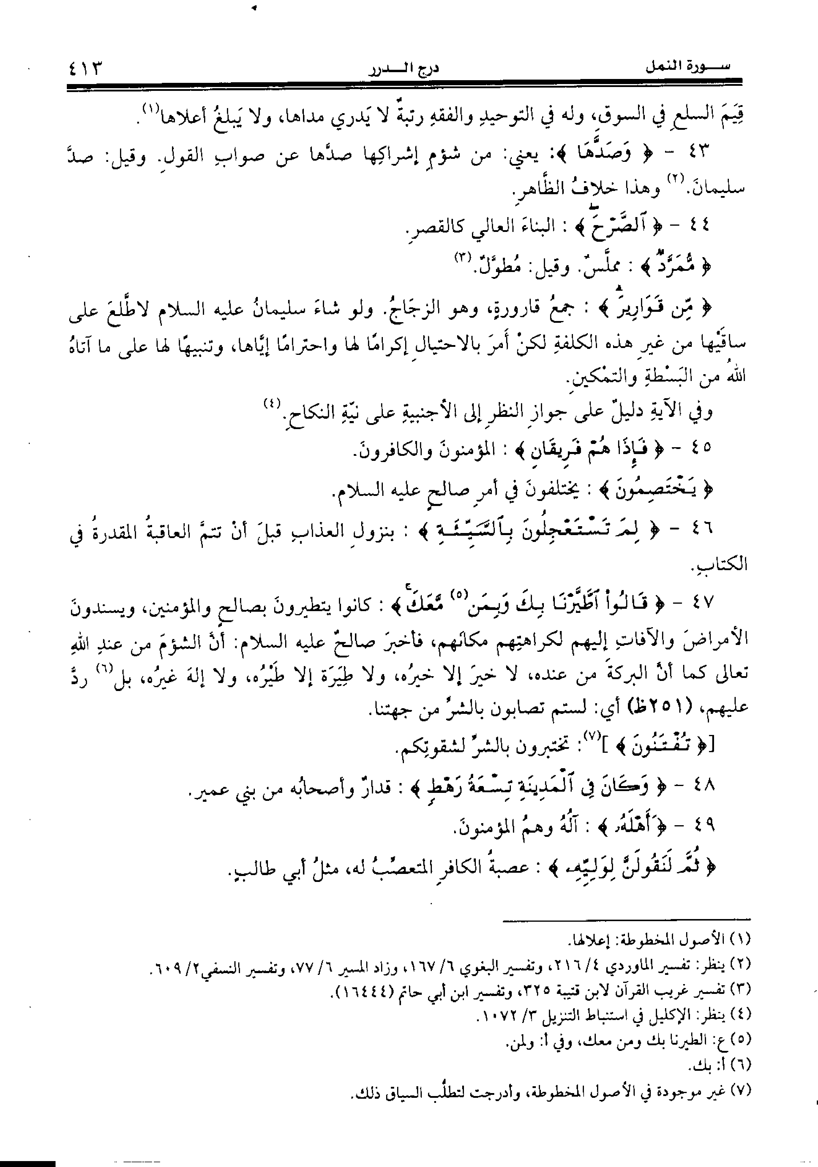 43 - {وَصَدَّها:} يعني: من شؤم إشراكها صدّها عن صواب القول. وقيل: صدّ سليمان. (¬2) وهذا خلاف الظّاهر.