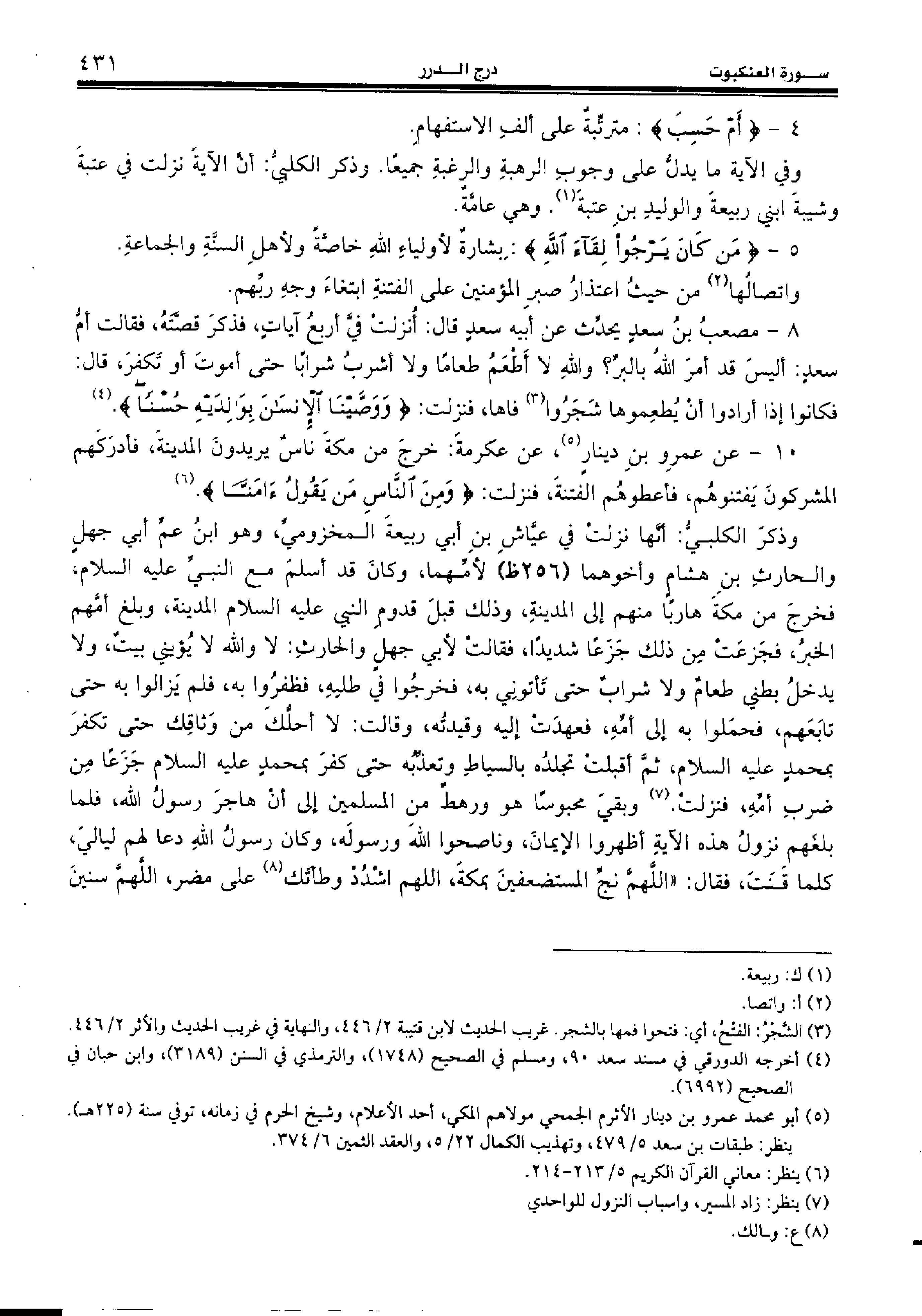 (¬7) ينظر: زاد المسير، واسباب النزول للواحدي.