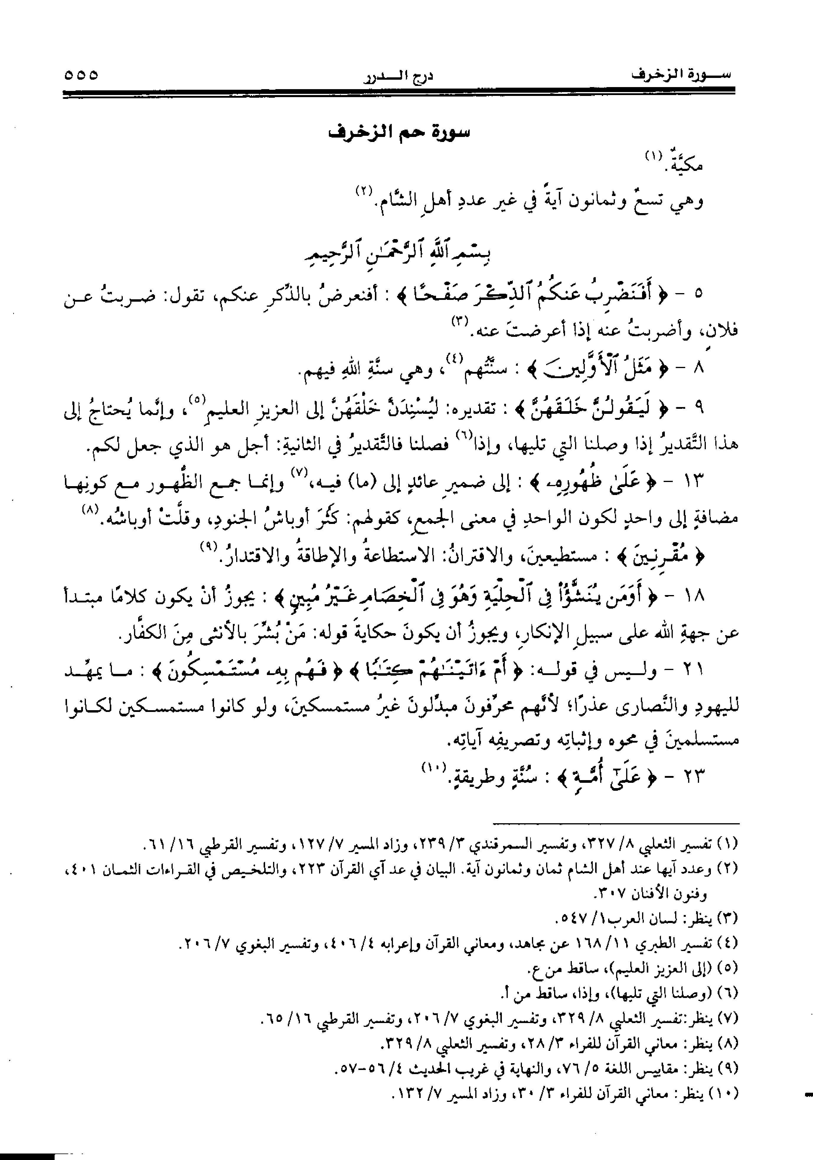 5 - {أَفَنَضْرِبُ عَنْكُمُ الذِّكْرَ صَفْحاً:} أفنعرض بالذّكر عنكم، تقول: ضربت عن فلان، وأضربت عنه إذا أعرضت عنه. (¬3)