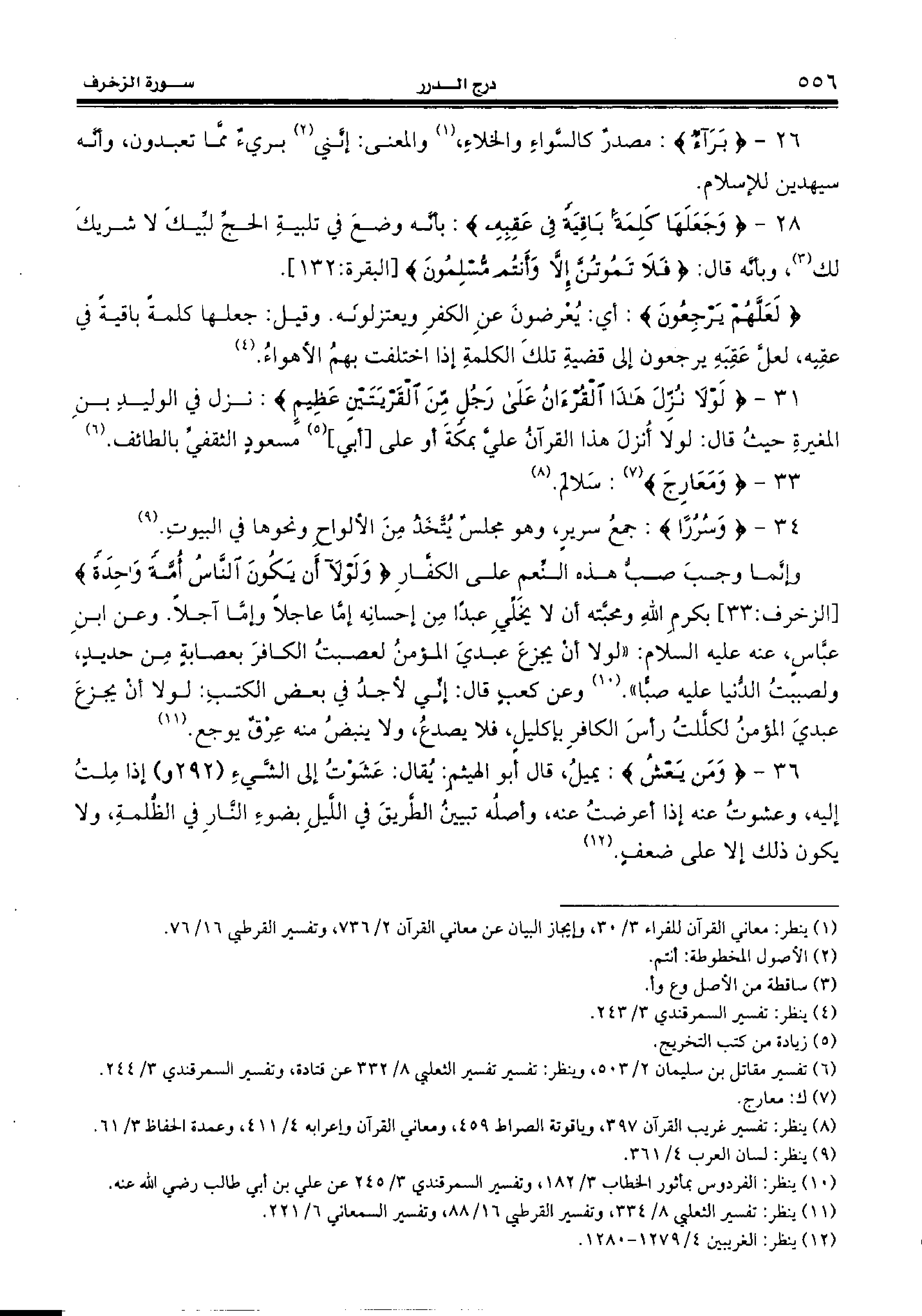 31 - {لَوْلا نُزِّلَ هذَا الْقُرْآنُ عَلى رَجُلٍ مِنَ الْقَرْيَتَيْنِ عَظِيمٍ:} نزل في الوليد بن المغيرة حيث قال: لولا أنزل هذا القرآن عليّ بمكة أو على [أبي] (¬5) مسعود الثقفيّ بالطائف. (¬6)