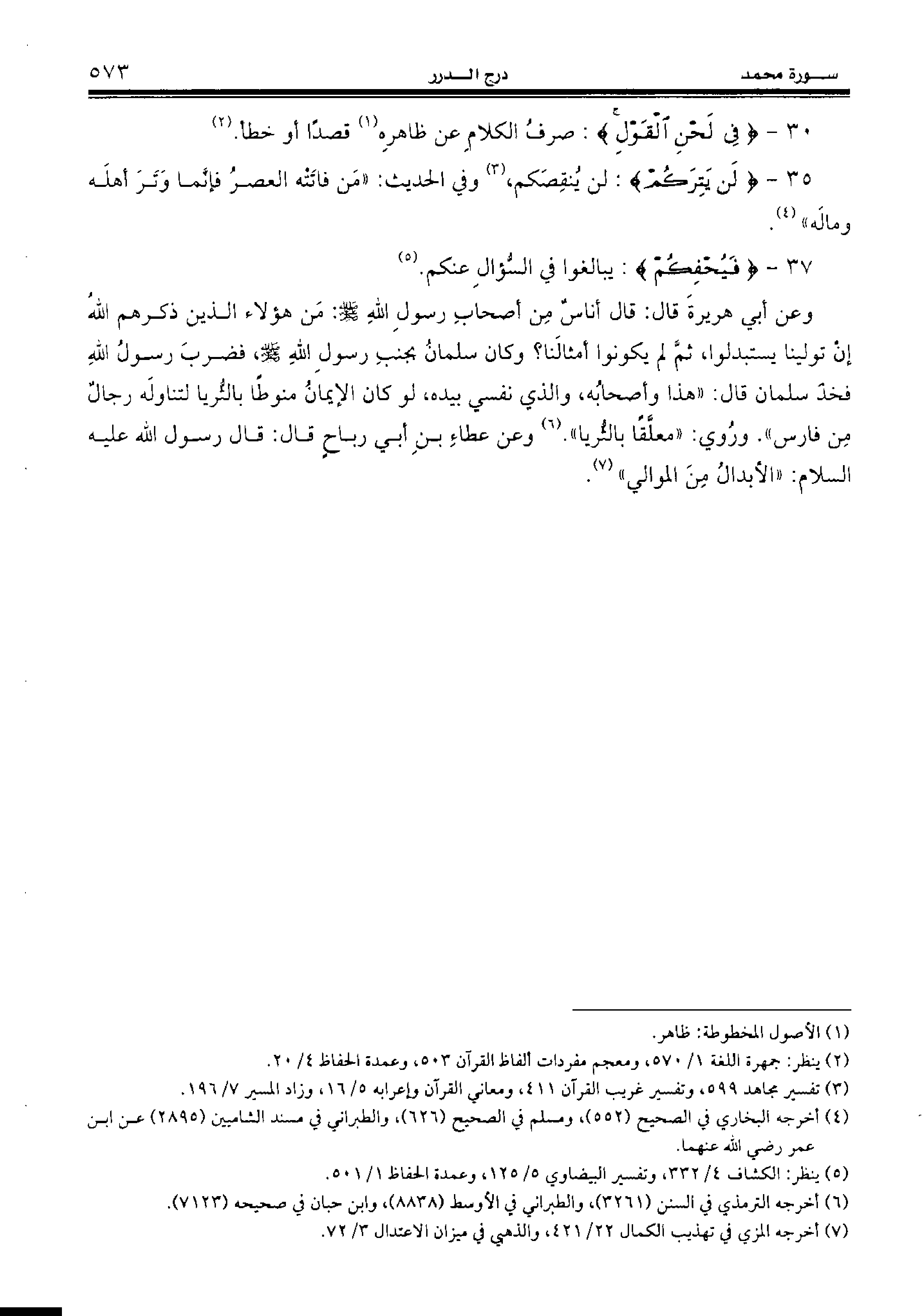 30 - {فِي لَحْنِ الْقَوْلِ:} صرف الكلام عن ظاهره (¬1) قصدا أو خطأ. (¬2)