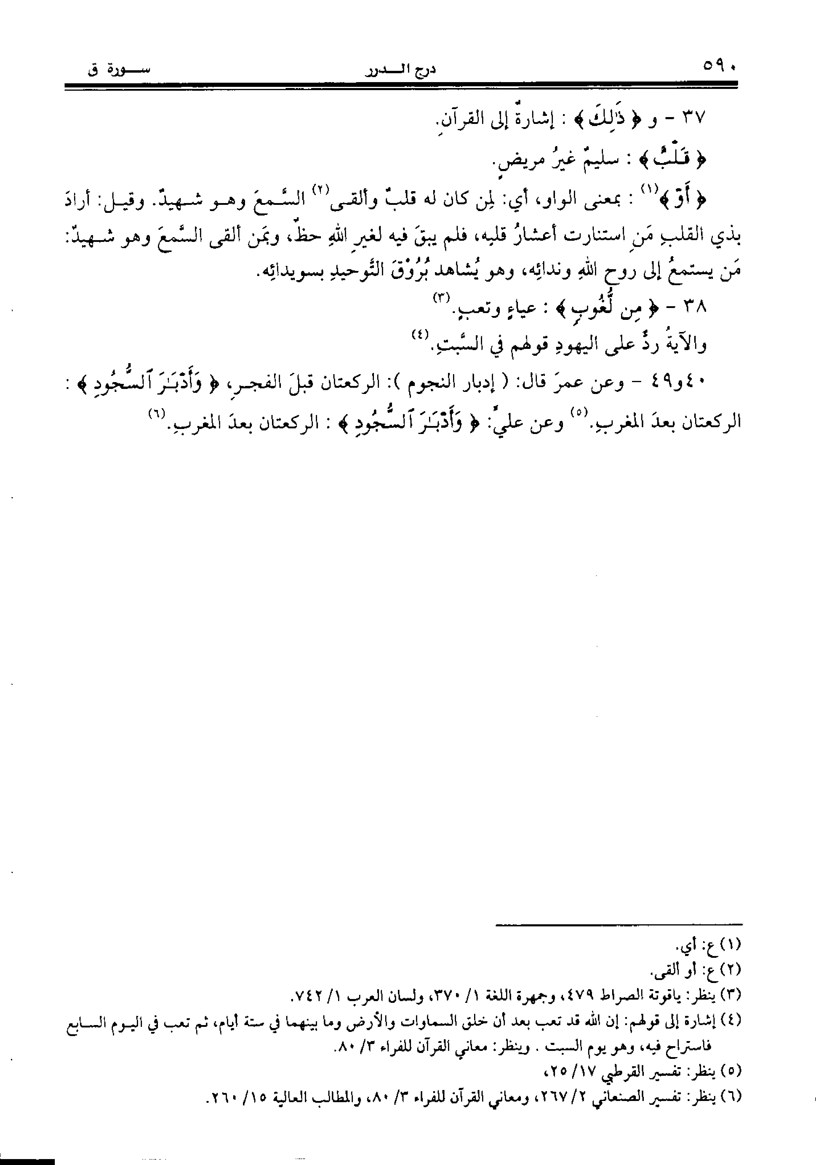 40 و 49 - وعن عمر قال: (إدبار النجوم): الركعتان قبل الفجر، {وَأَدْبارَ السُّجُودِ:}