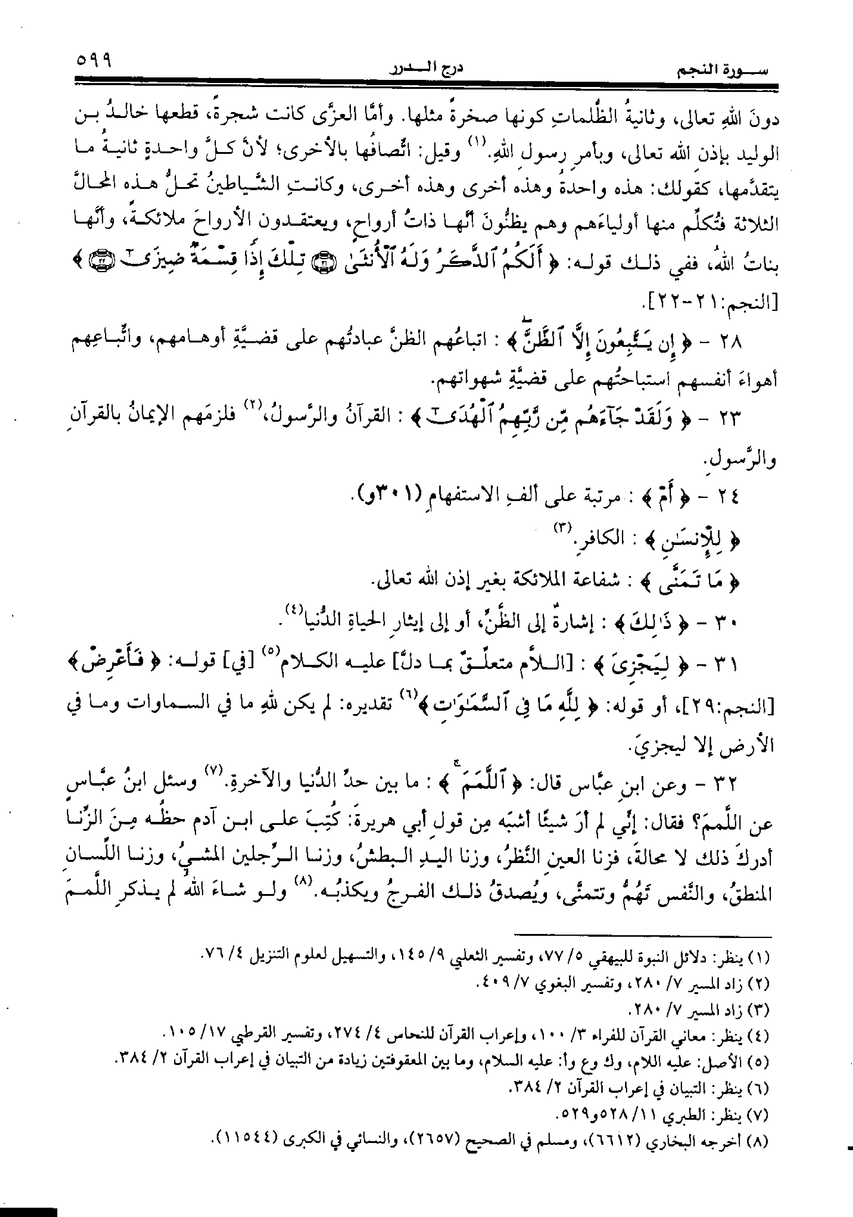 31 - {لِيَجْزِيَ:} [اللاّم متعلّق بما دلّ] عليه الكلام (¬5) [في] قوله: {فَأَعْرِضْ} [النجم:29]، أو قوله: {لِلّهِ ما فِي السَّماواتِ} (¬6) تقديره: لم يكن لله ما في السماوات وما في الأرض إلا ليجزي.