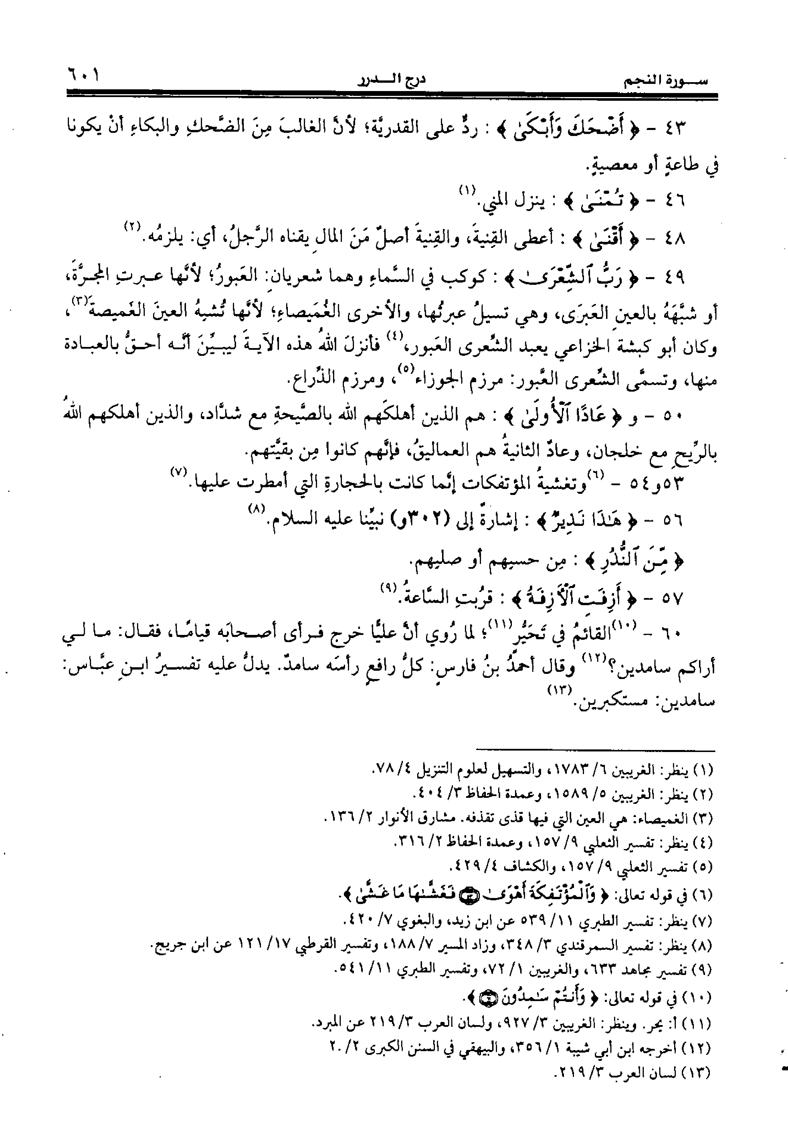 43 - {أَضْحَكَ وَأَبْكى:} ردّ على القدريّة؛ لأنّ الغالب من الضّحك والبكاء أن يكونا في طاعة أو معصية.