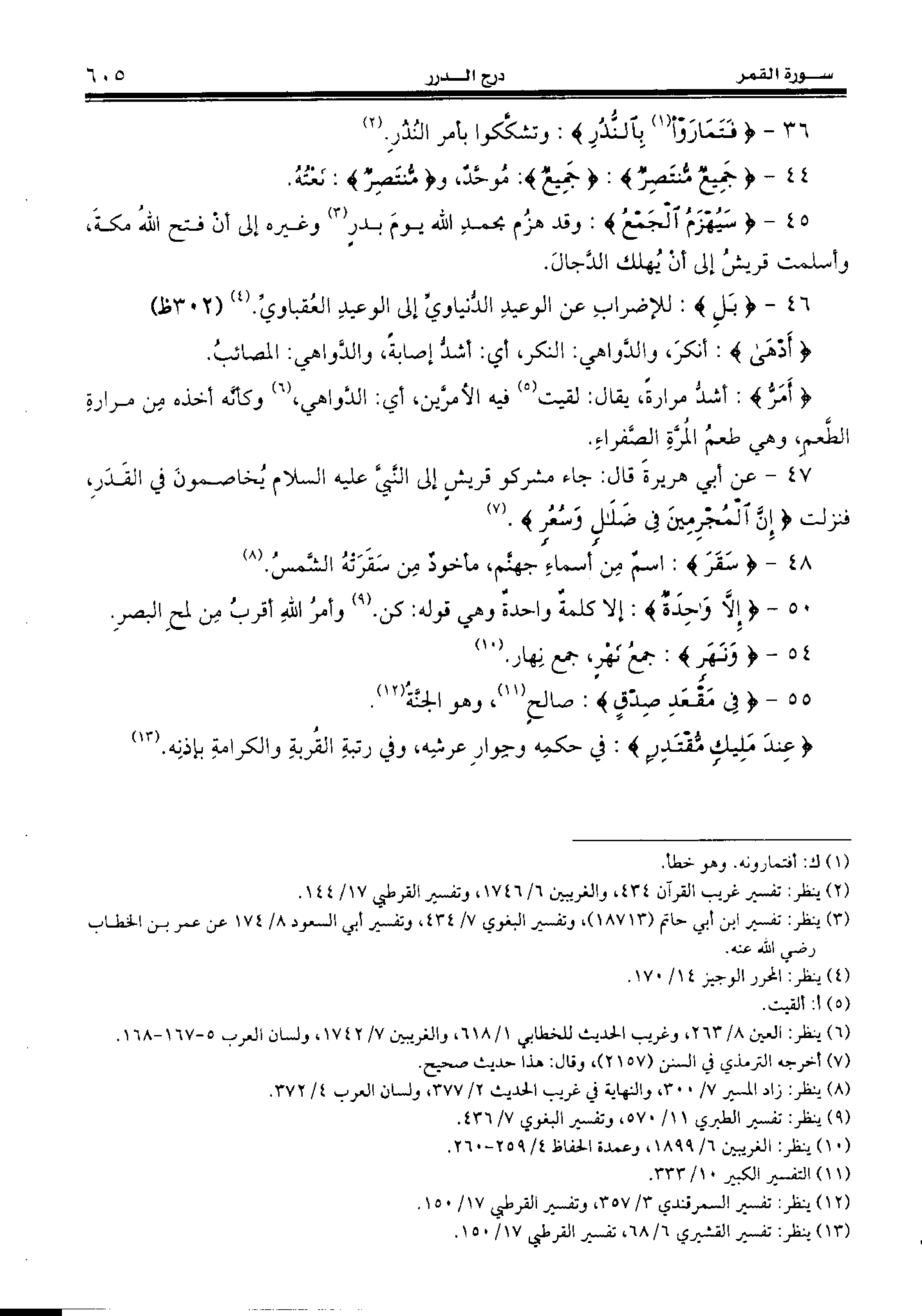46 - {بَلِ:} للإضراب عن الوعيد الدّنياويّ إلى الوعيد العقباويّ. (¬4) (302 ظ)