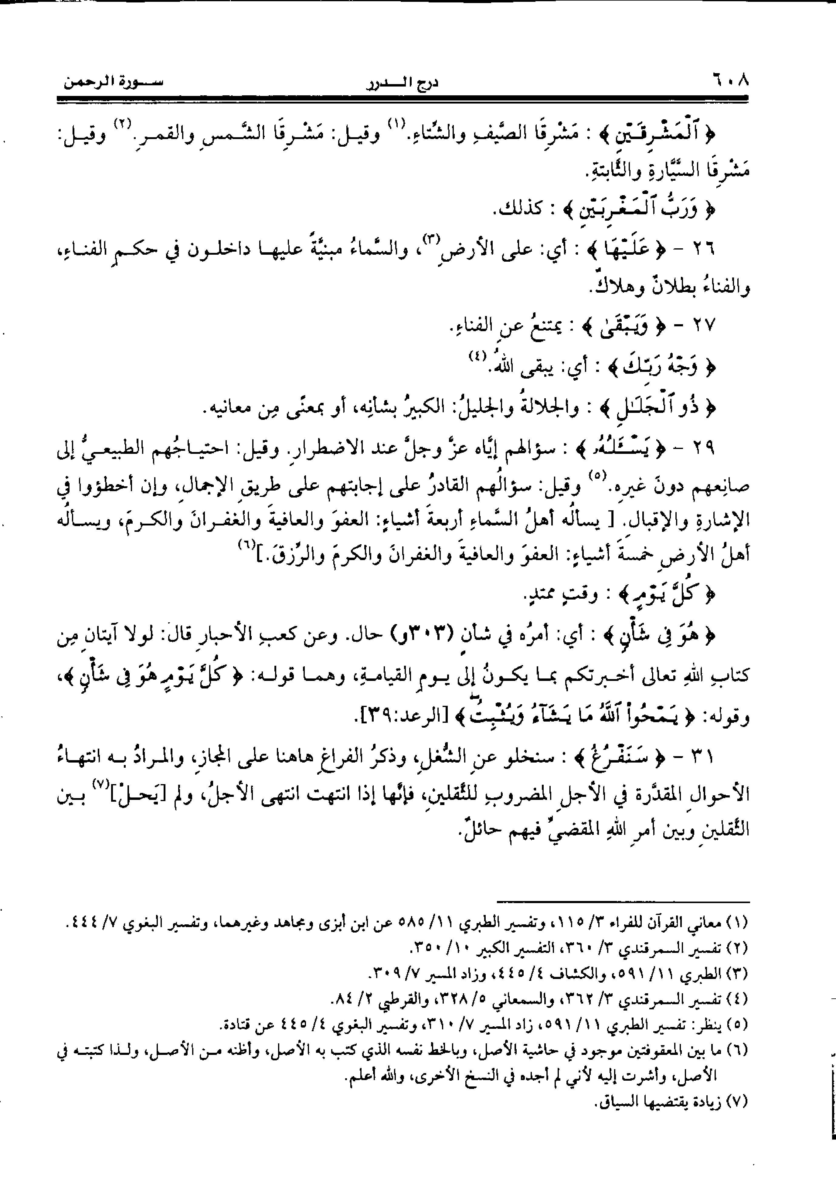 26 - {عَلَيْها:} أي: على الأرض (¬3)، والسّماء مبنيّة عليها داخلون في حكم الفناء، والفناء بطلان وهلاك.