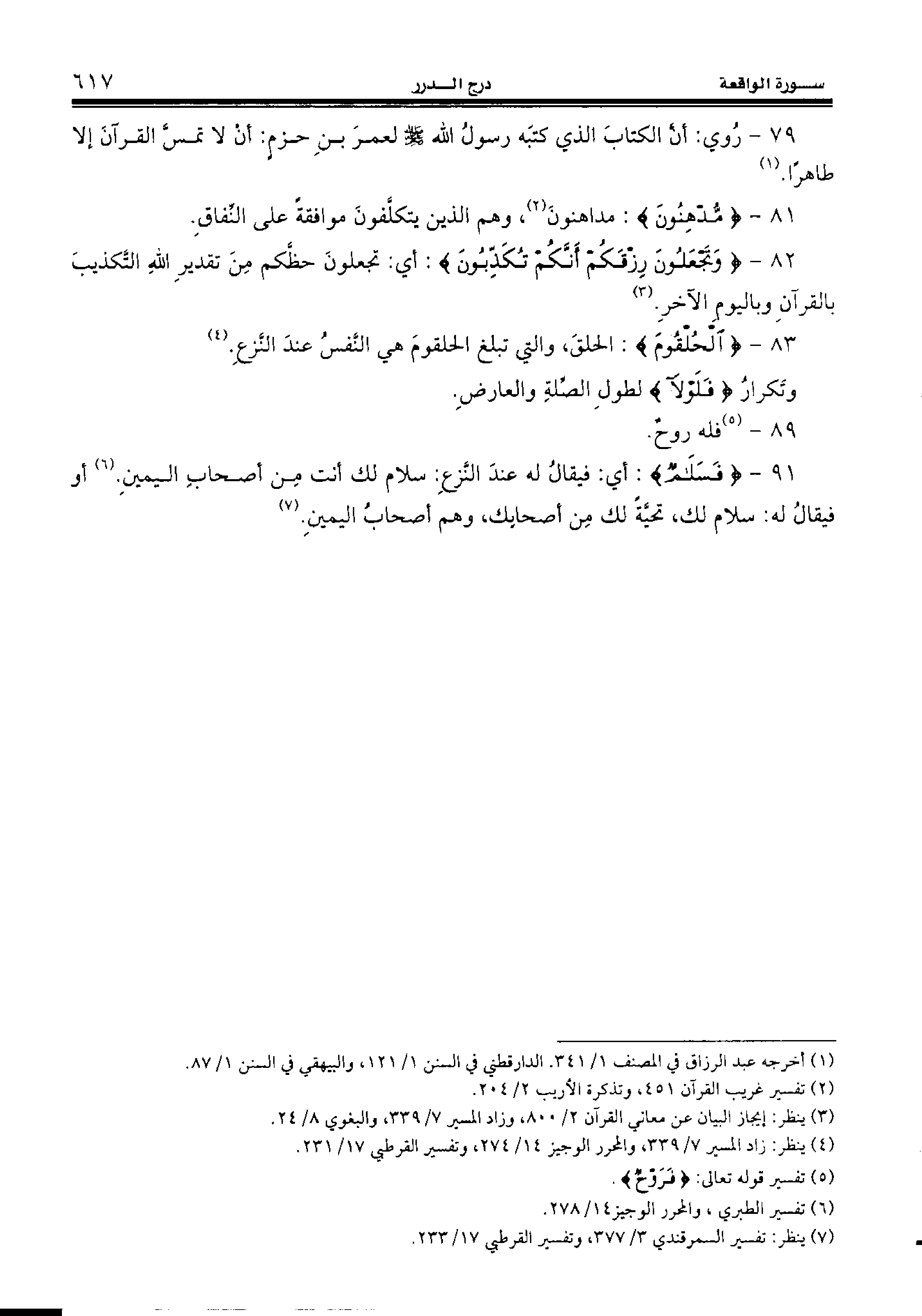 (¬7) ينظر: تفسير السمرقندي 3/ 377، وتفسير القرطبي 17/ 233.