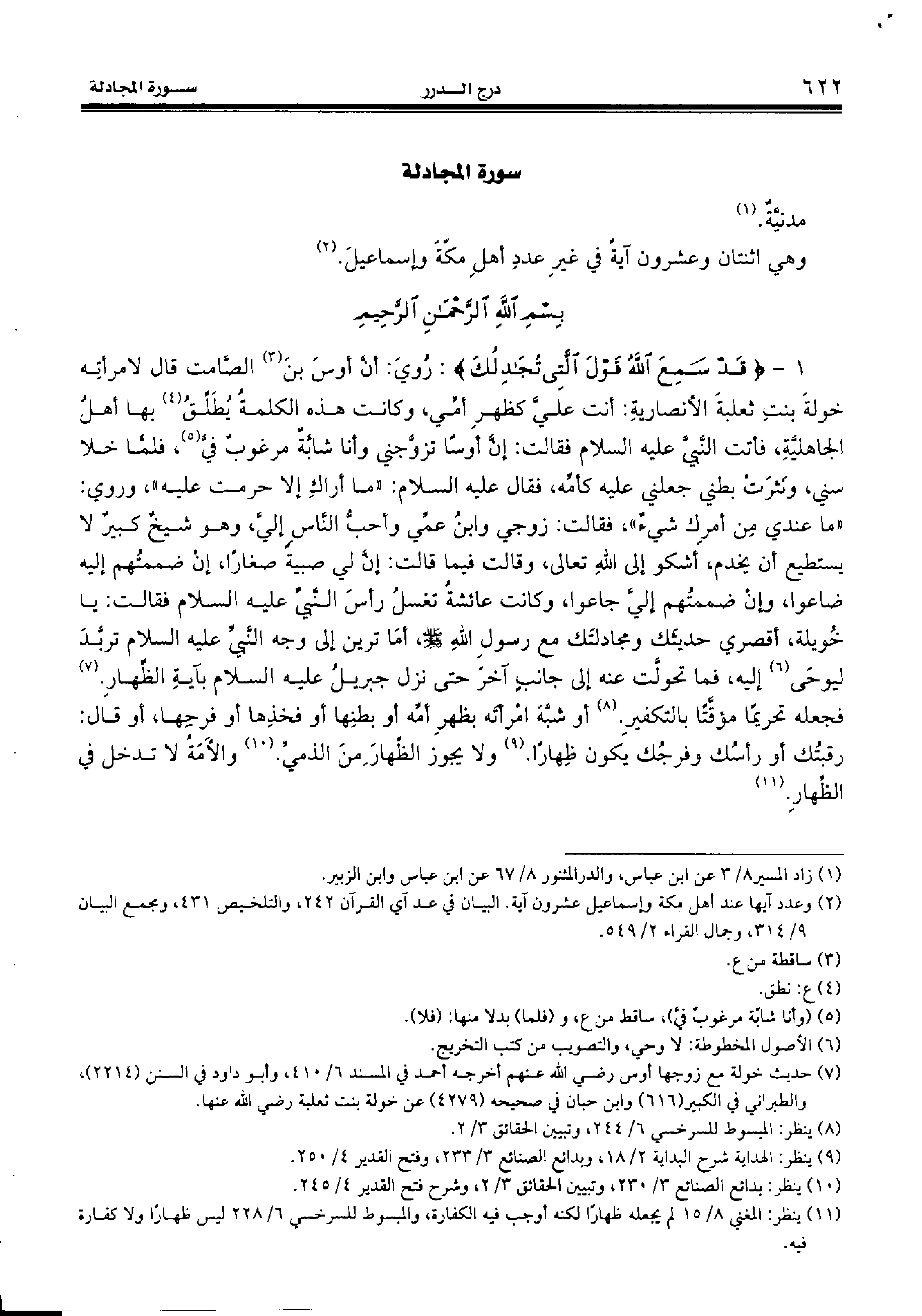 (¬7) حديث خولة مع زوجها أوس رضي الله عنهم أخرجه أحمد في المسند 6/ 410، وأبو داود في السنن (2214)، والطبراني في الكبير (616) وابن حبان في صحيحه (4279) عن خولة بنت ثعلبة رضي الله عنها.
