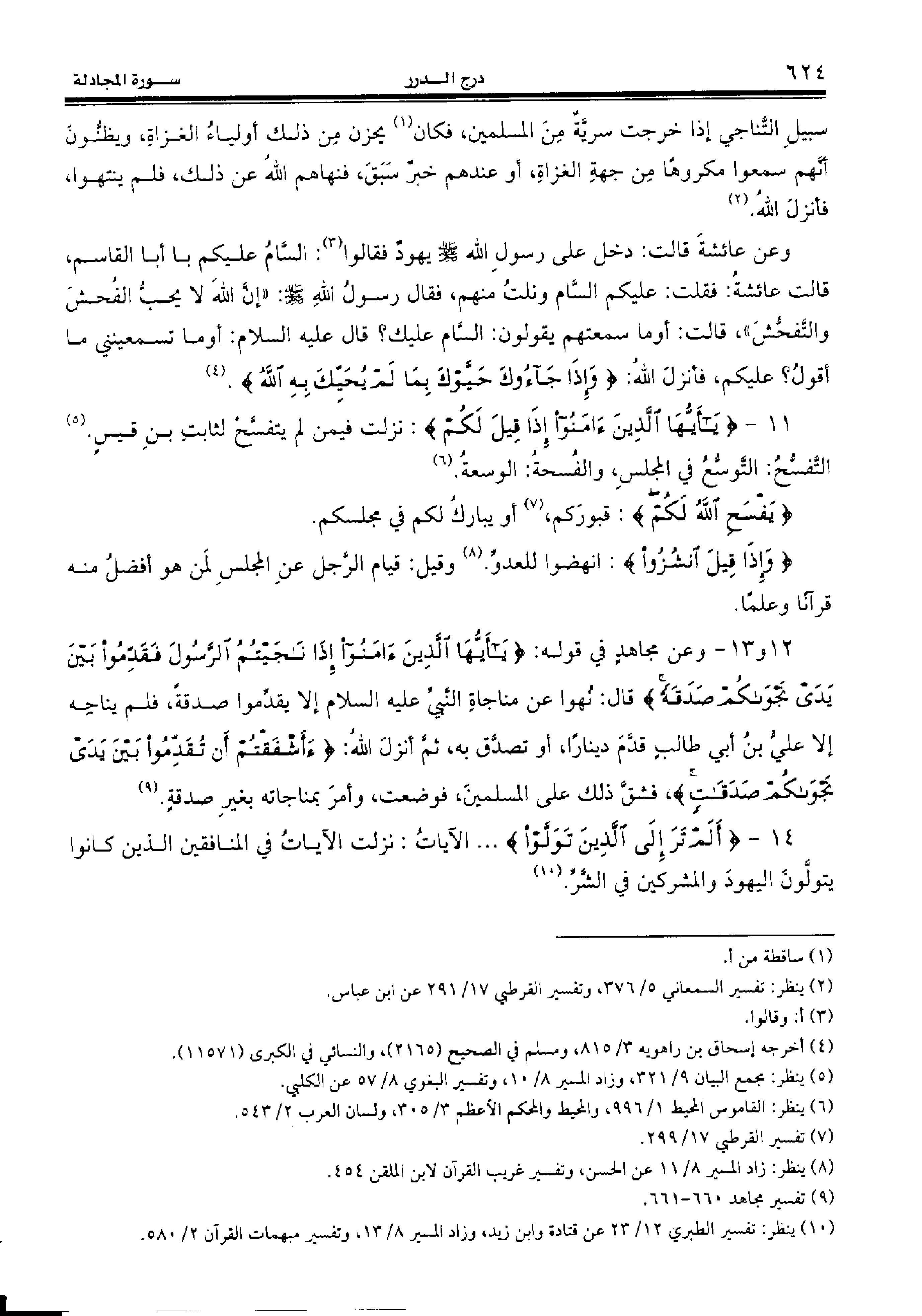 14 - {أَلَمْ تَرَ إِلَى الَّذِينَ تَوَلَّوْا. . .} الآيات: نزلت الآيات في المنافقين الذين كانوا يتولّون اليهود والمشركين في الشّرّ. (¬10)
