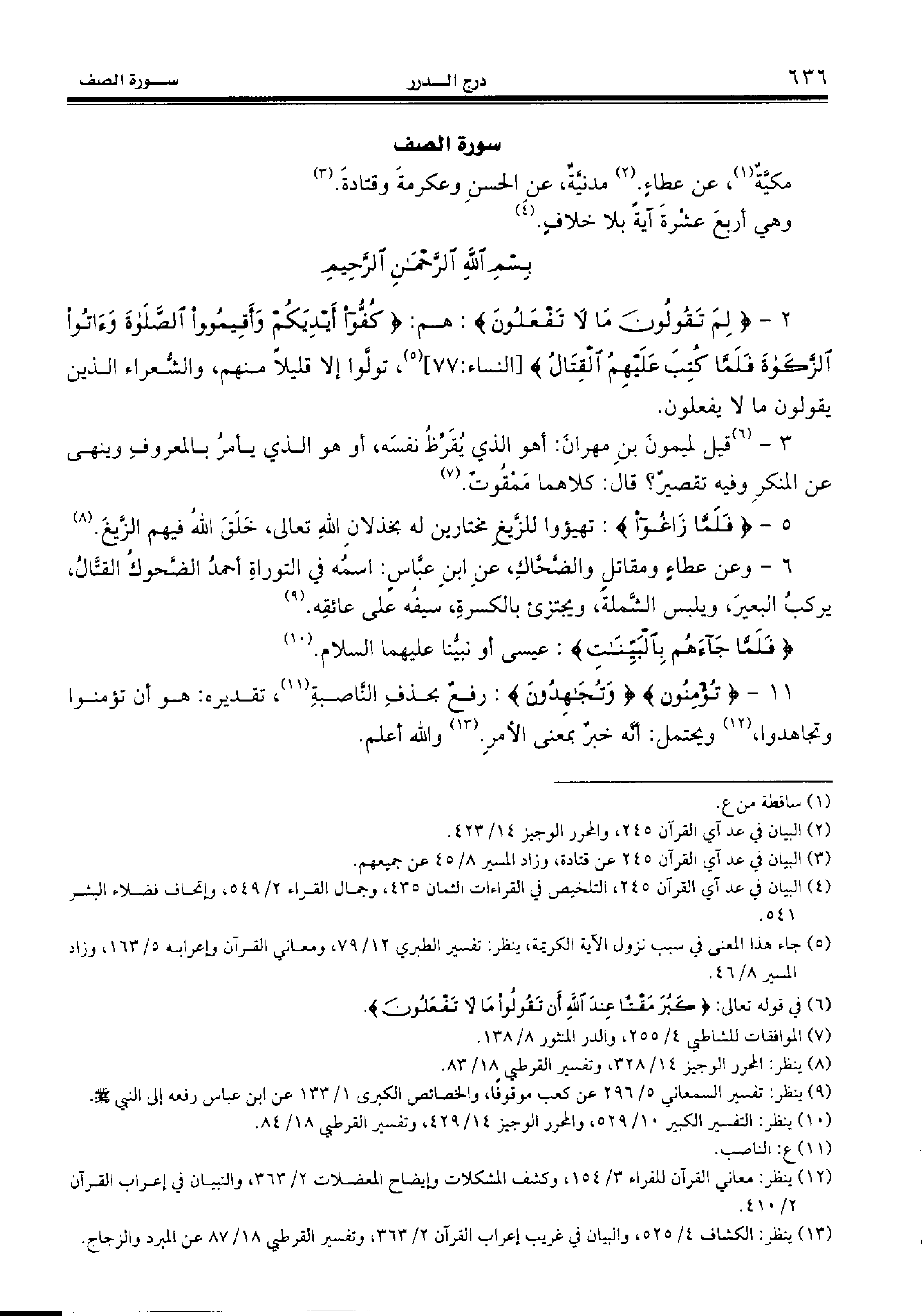 (¬7) الموافقات للشاطبي 4/ 255، والدر المنثور 8/ 138.