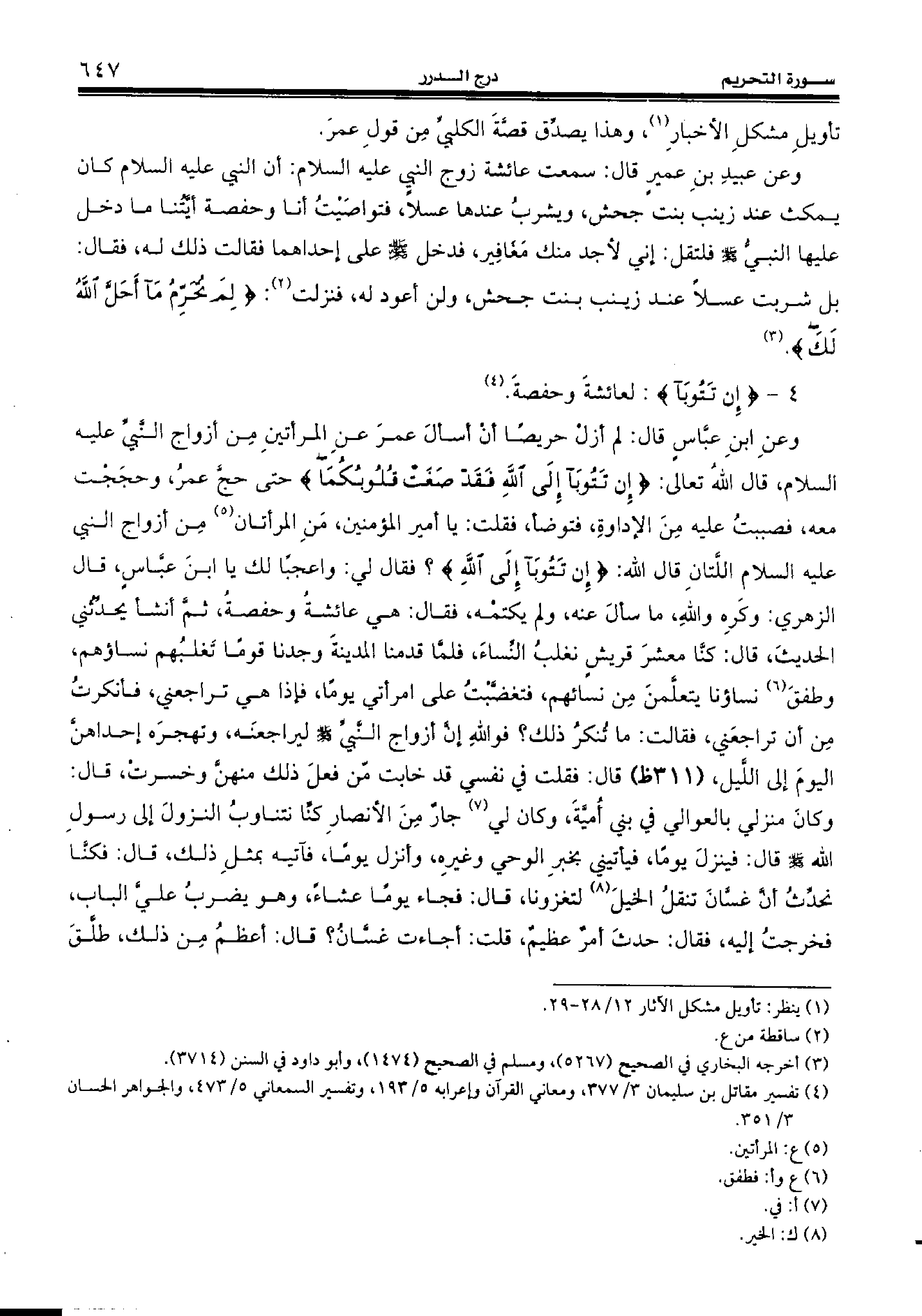 تأويل مشكل الأخبار (¬1)، وهذا يصدّق قصّة الكلبيّ من قول عمر.