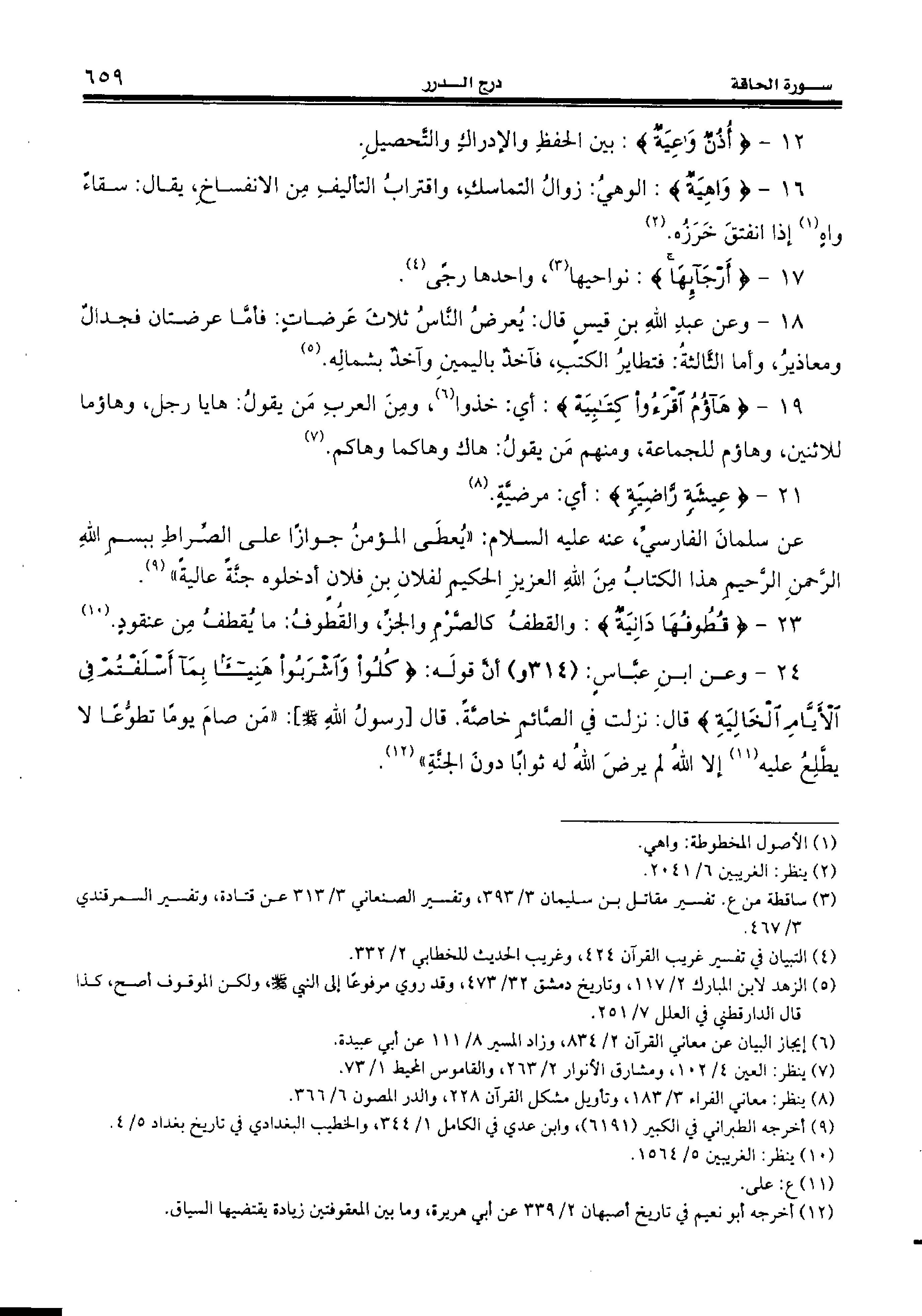 (¬12) أخرجه أبو نعيم في تاريخ أصبهان 2/ 339 عن أبي هريرة، وما بين المعقوفتين زيادة يقتضيها السياق.
