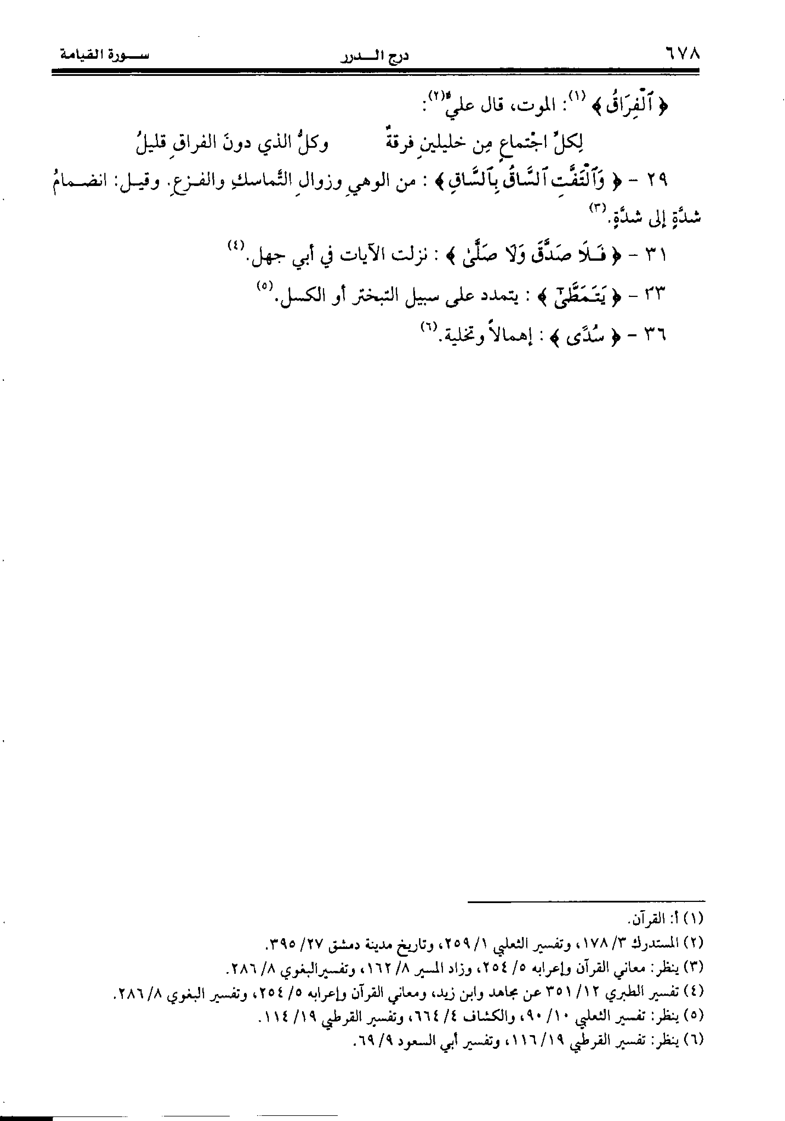 29 - {وَاِلْتَفَّتِ السّاقُ بِالسّاقِ:} من الوهي وزوال التّماسك والفزع. وقيل: انضمام شدّة إلى شدّة. (¬3)