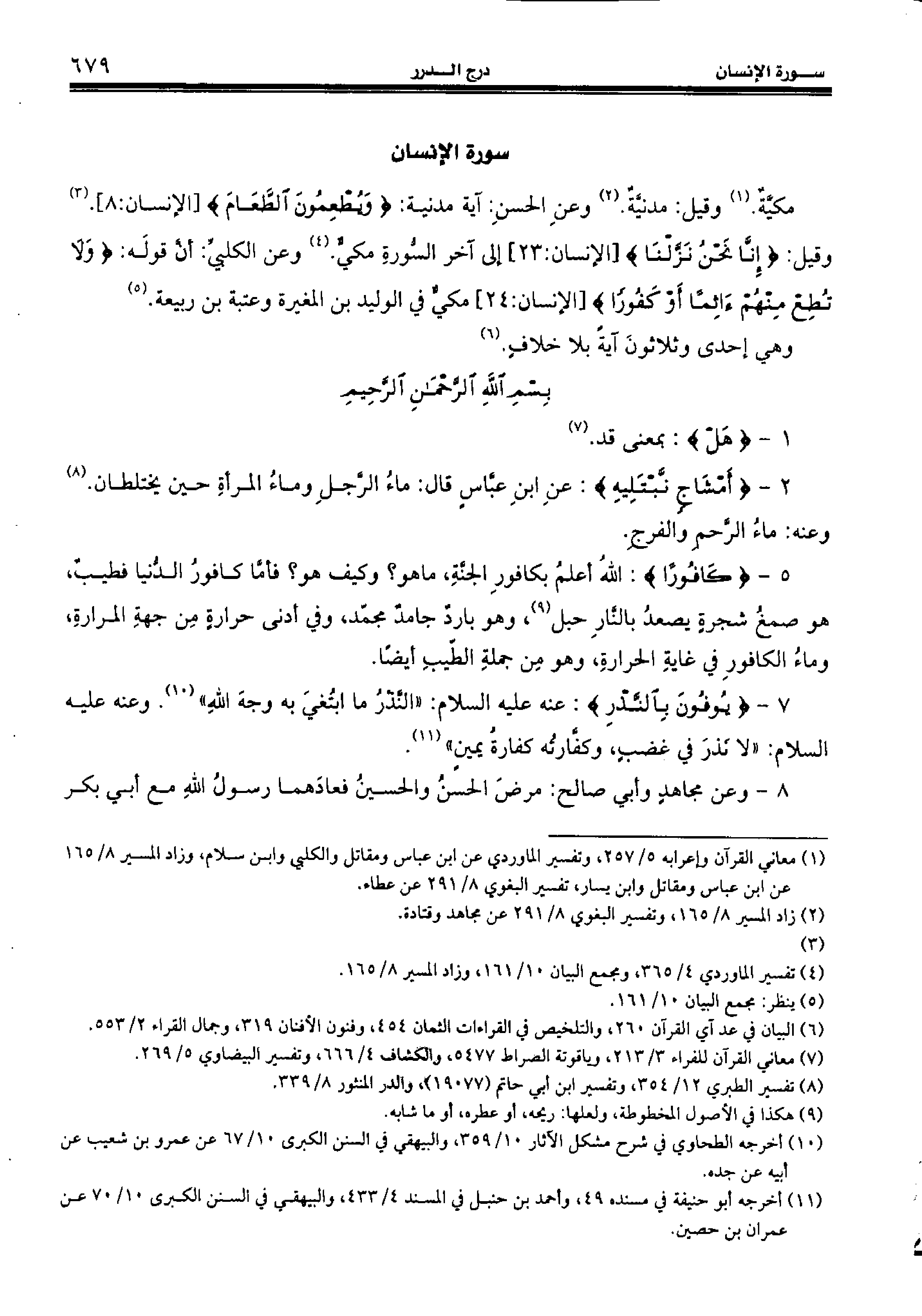 وقيل: {إِنّا نَحْنُ نَزَّلْنا} [الإنسان:23] إلى آخر السّورة مكيّ. (¬4) وعن الكلبيّ: أنّ قوله: {وَلا تُطِعْ مِنْهُمْ آثِماً أَوْ كَفُوراً} [الإنسان:24] مكيّ في الوليد بن المغيرة وعتبة بن ربيعة. (¬5)