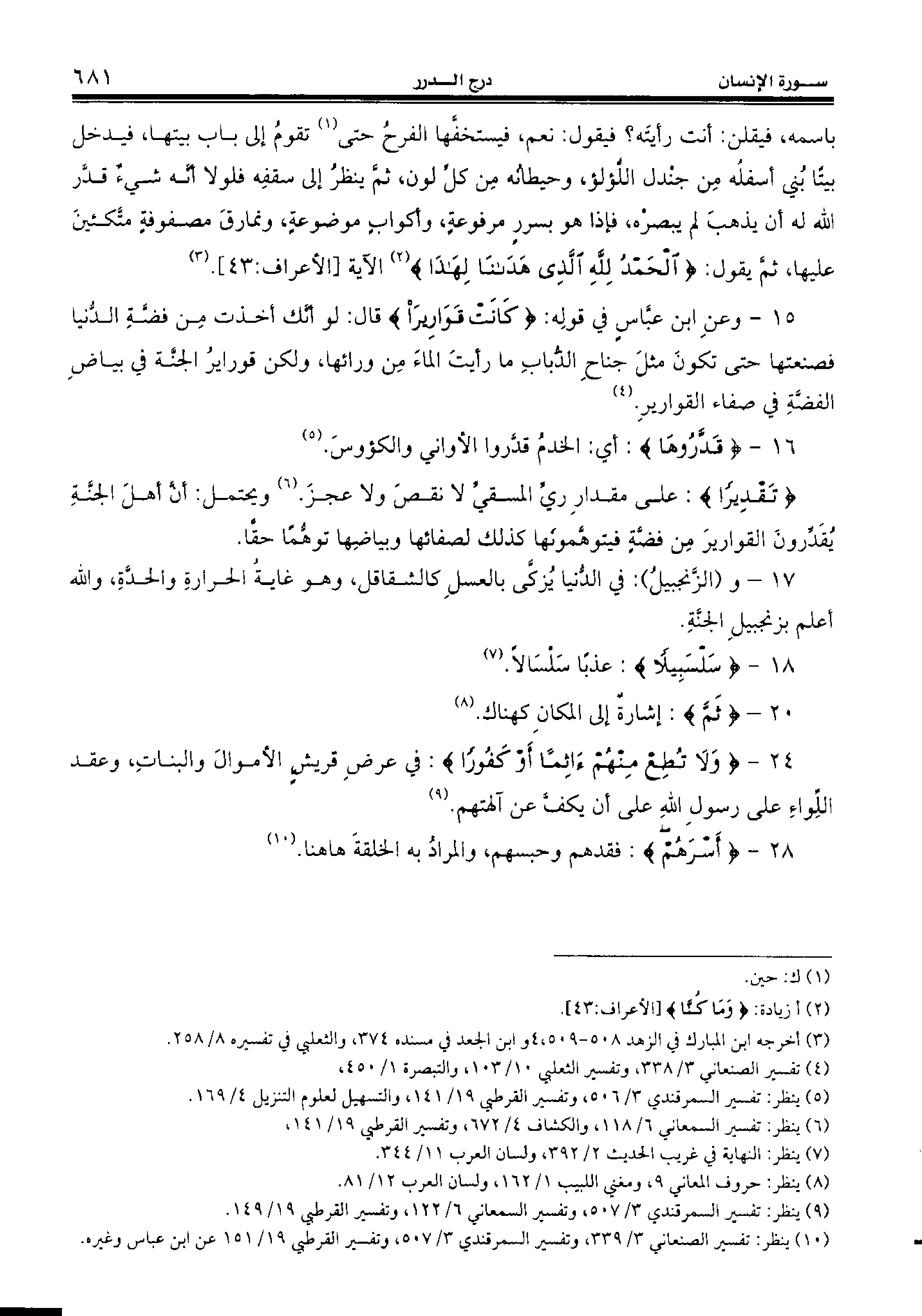 (¬9) ينظر: تفسير السمرقندي 3/ 507، وتفسير السمعاني 6/ 122، وتفسير القرطبي 19/ 149.
