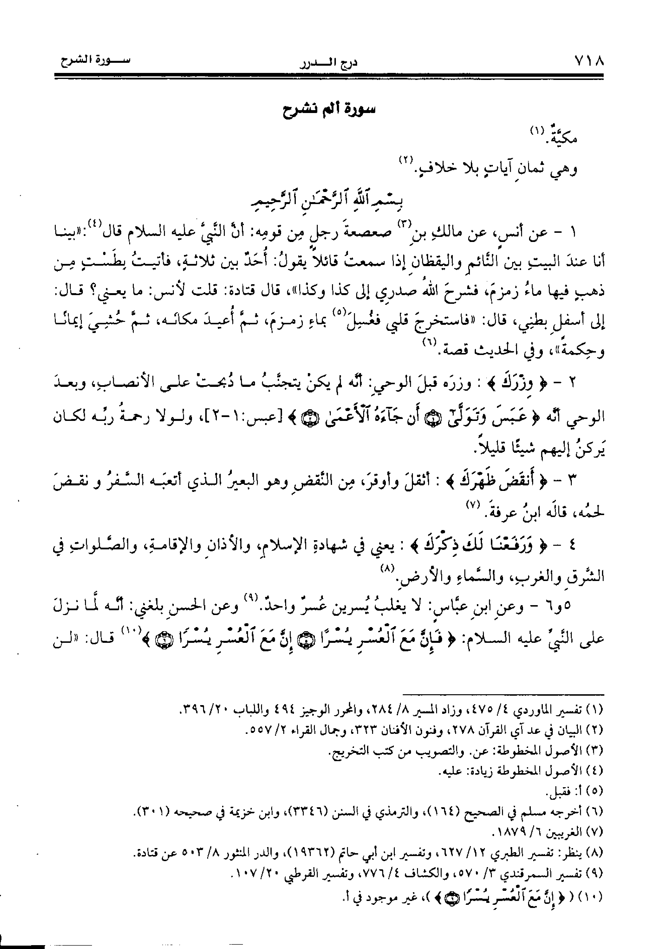 (¬9) تفسير السمرقندي 3/ 570، والكشاف 4/ 776، وتفسير القرطبي 20/ 107.
