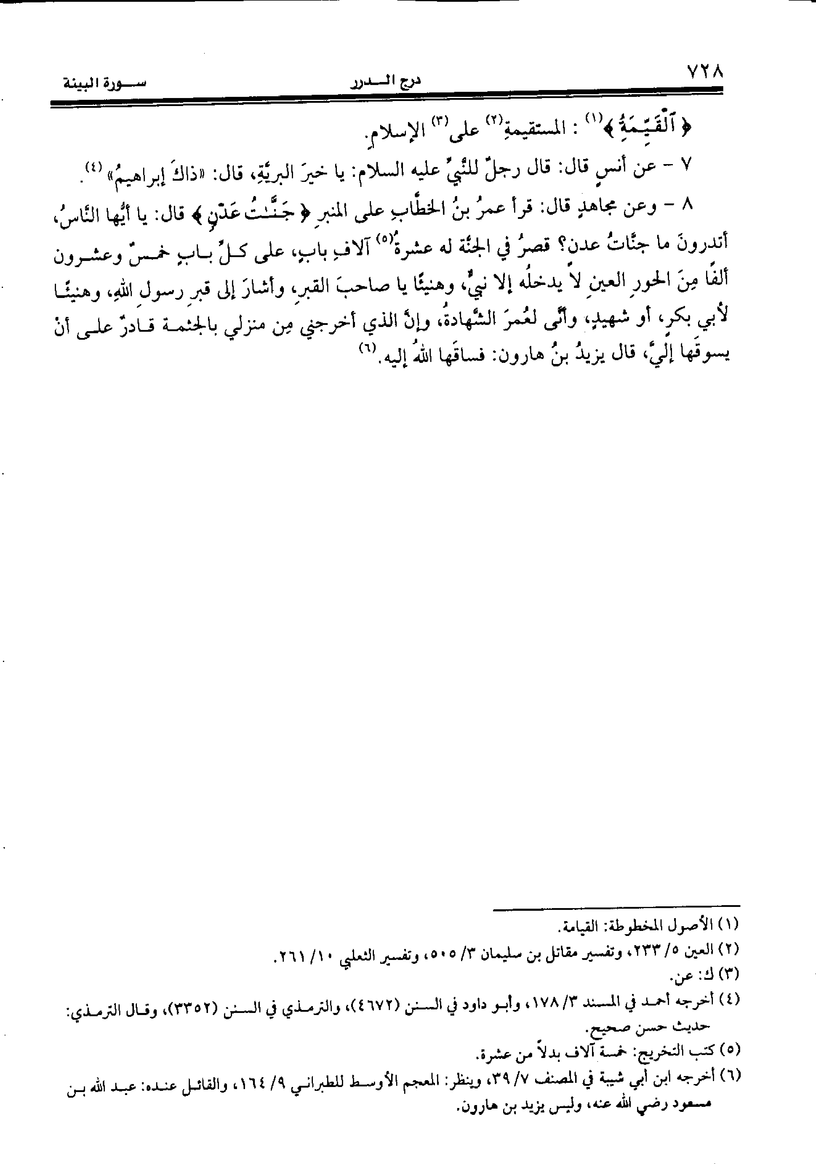 (¬6) أخرجه ابن أبي شيبة في المصنف 7/ 39، وينظر: المعجم الأوسط للطبراني 9/ 164، والقائل عنده: عبد الله بن مسعود رضي الله عنه، وليس يزيد بن هارون.