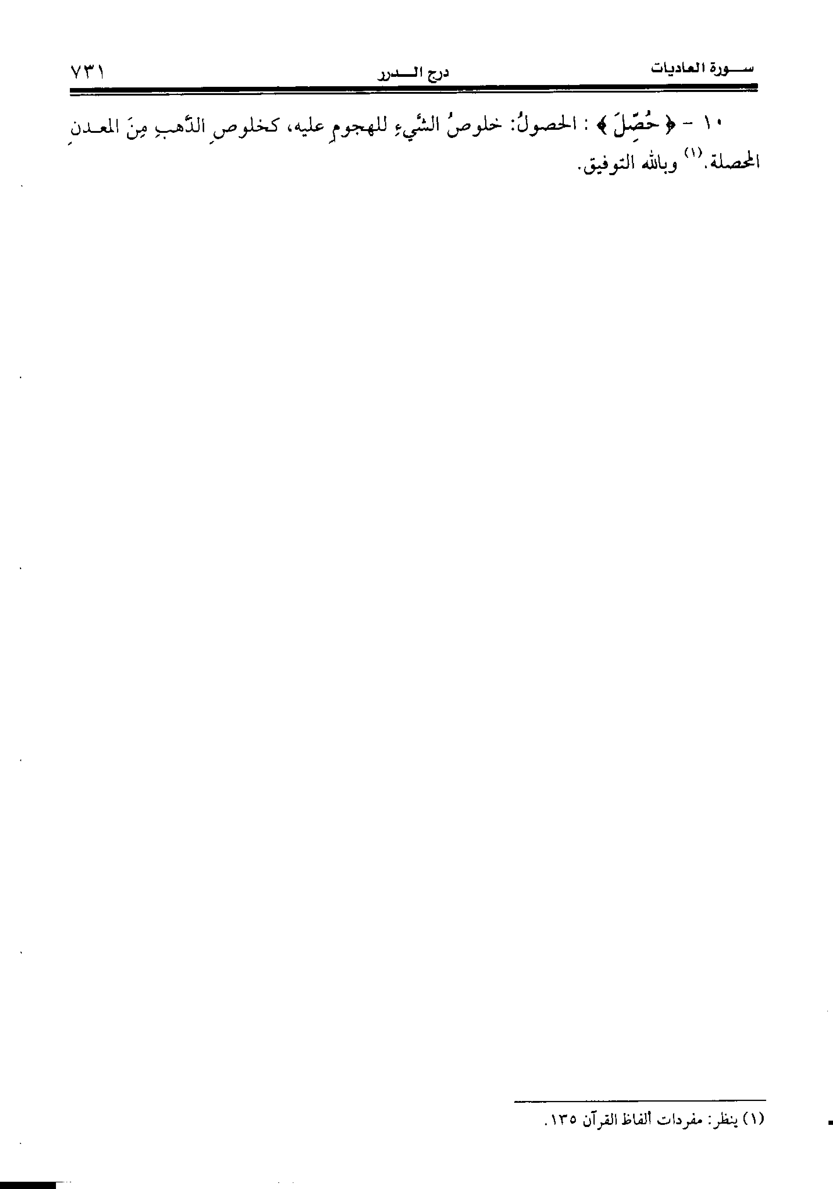 10 - {حُصِّلَ:} الحصول: خلوص الشّيء للهجوم عليه، كخلوص الذّهب من المعدن المحصلة. (¬1) وبالله التوفيق.