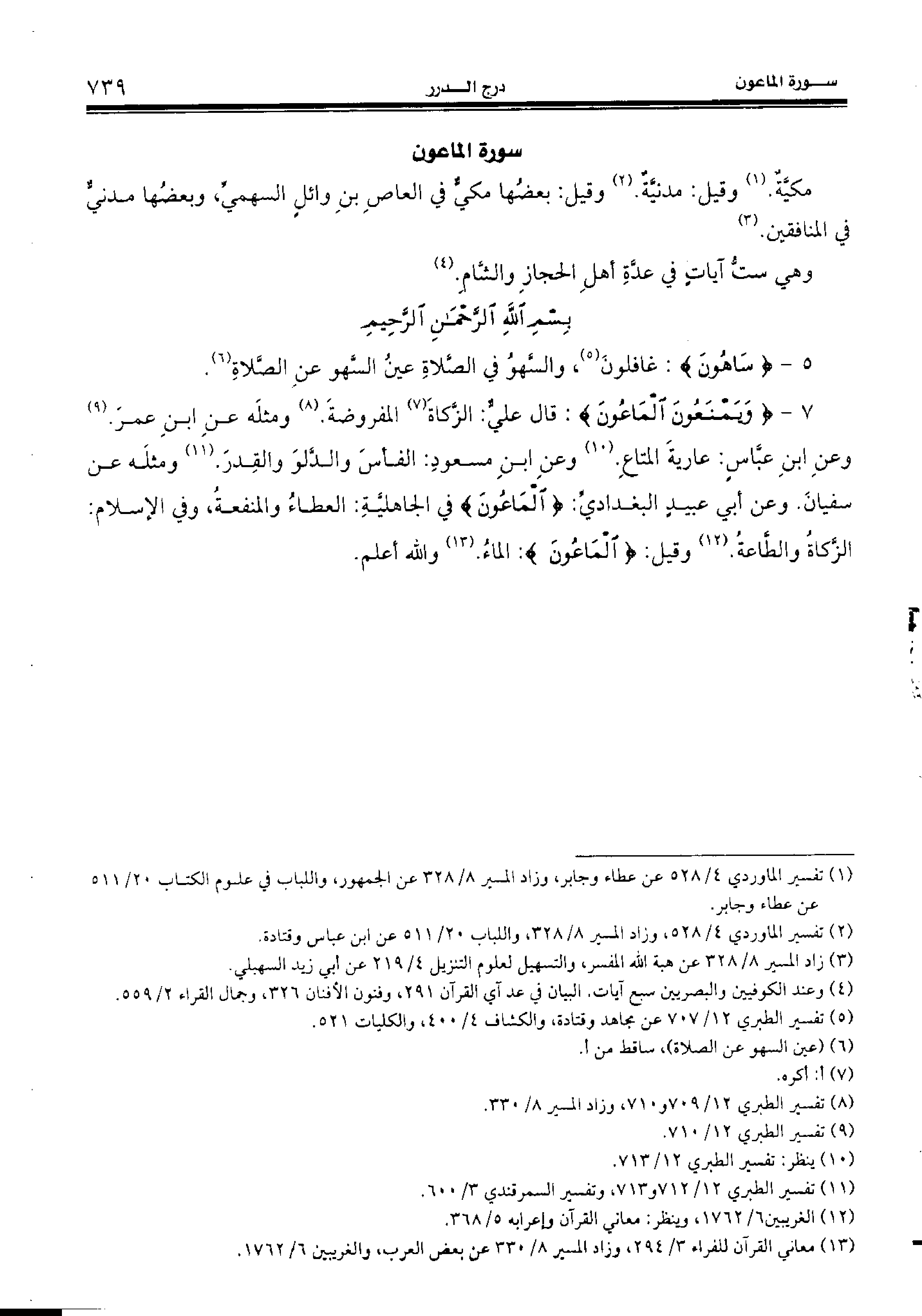 7 - {وَيَمْنَعُونَ الْماعُونَ:} قال عليّ: الزّكاة (¬7) المفروضة. (¬8) ومثله عن ابن عمر. (¬9)