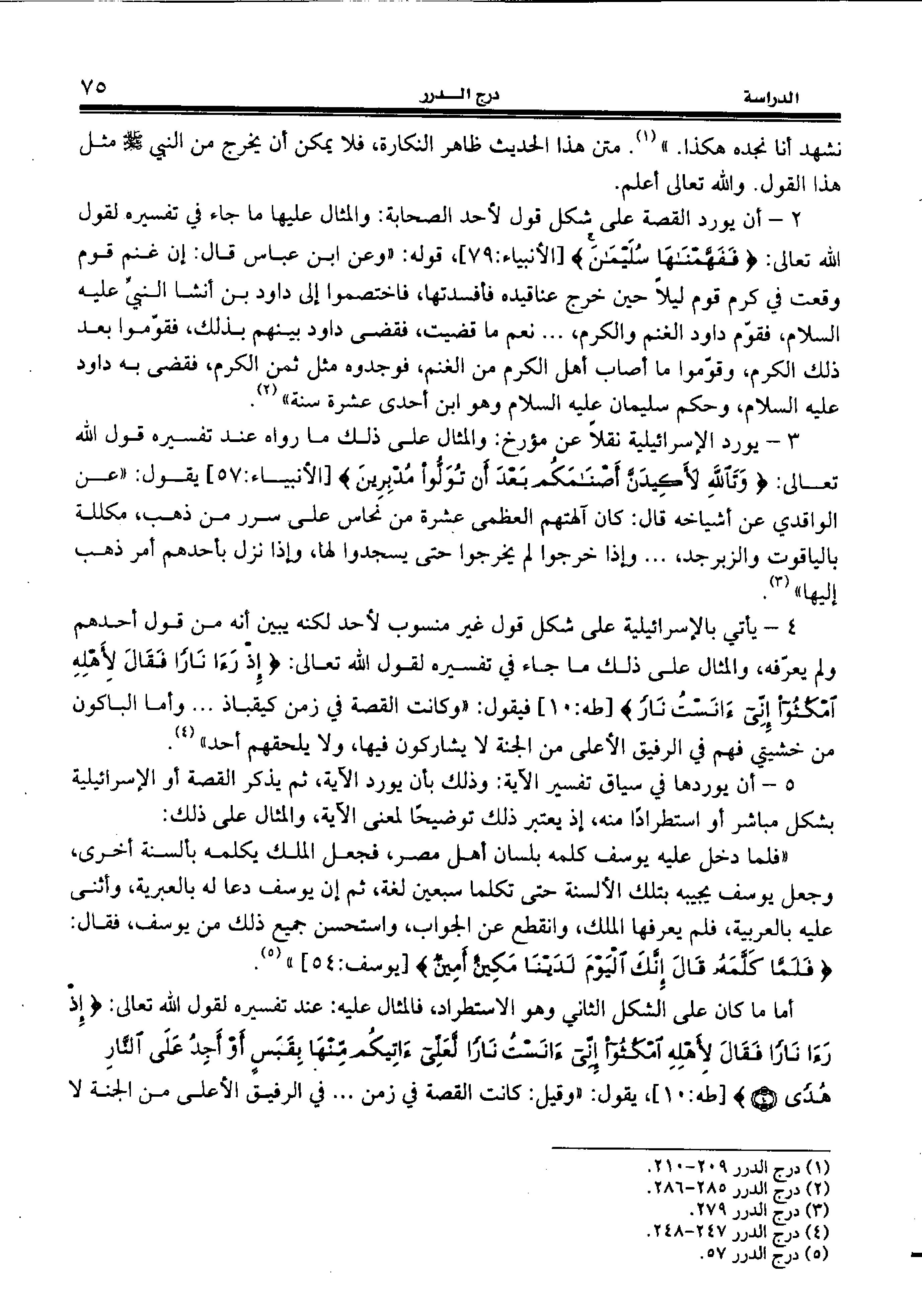 5 - أن يوردها في سياق تفسير الآية: وذلك بأن يورد الآية، ثم يذكر القصة أو الإسرائيلية بشكل مباشر أو استطرادا منه، إذ يعتبر ذلك توضيحا لمعنى الآية، والمثال على ذلك: