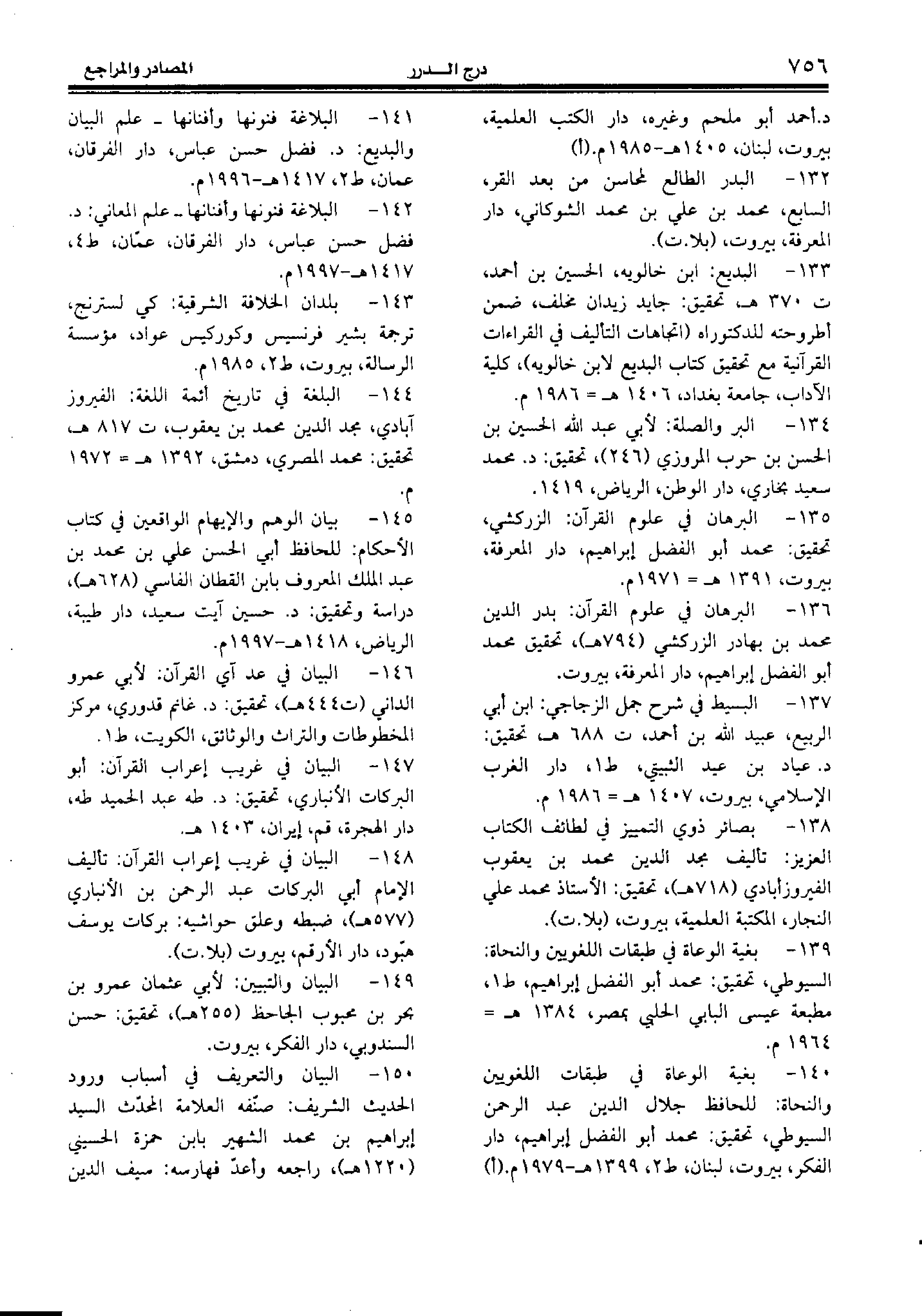 135 - البرهان في علوم القرآن: الزركشي، تحقيق: محمد أبو الفضل إبراهيم، دار المعرفة، بيروت،1391 هـ-1971 م.