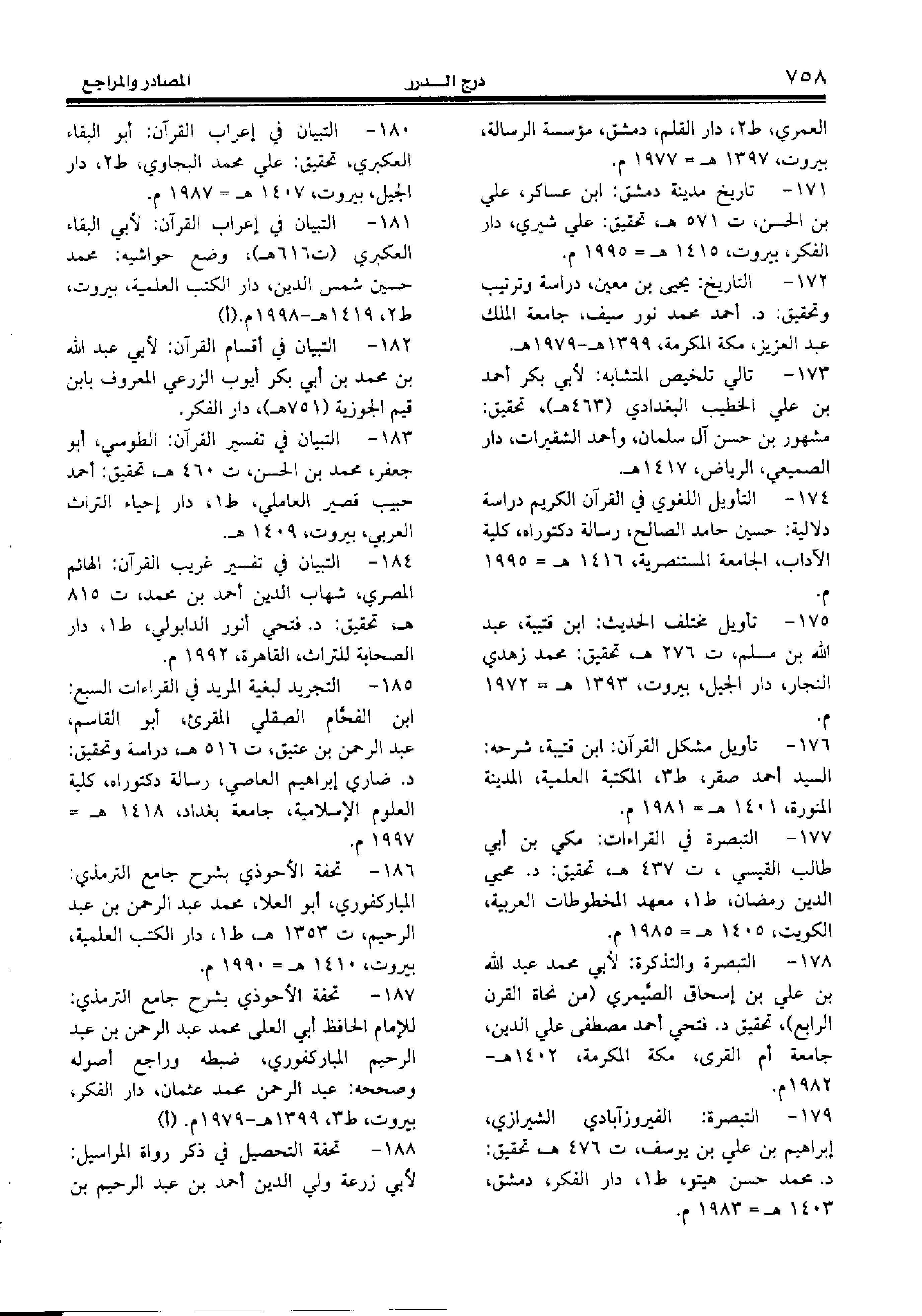 180 - التبيان في إعراب القرآن: أبو البقاء العكبري، تحقيق: علي محمد البجاوي، ط 2، دار الجيل، بيروت،1407 هـ-1987 م.