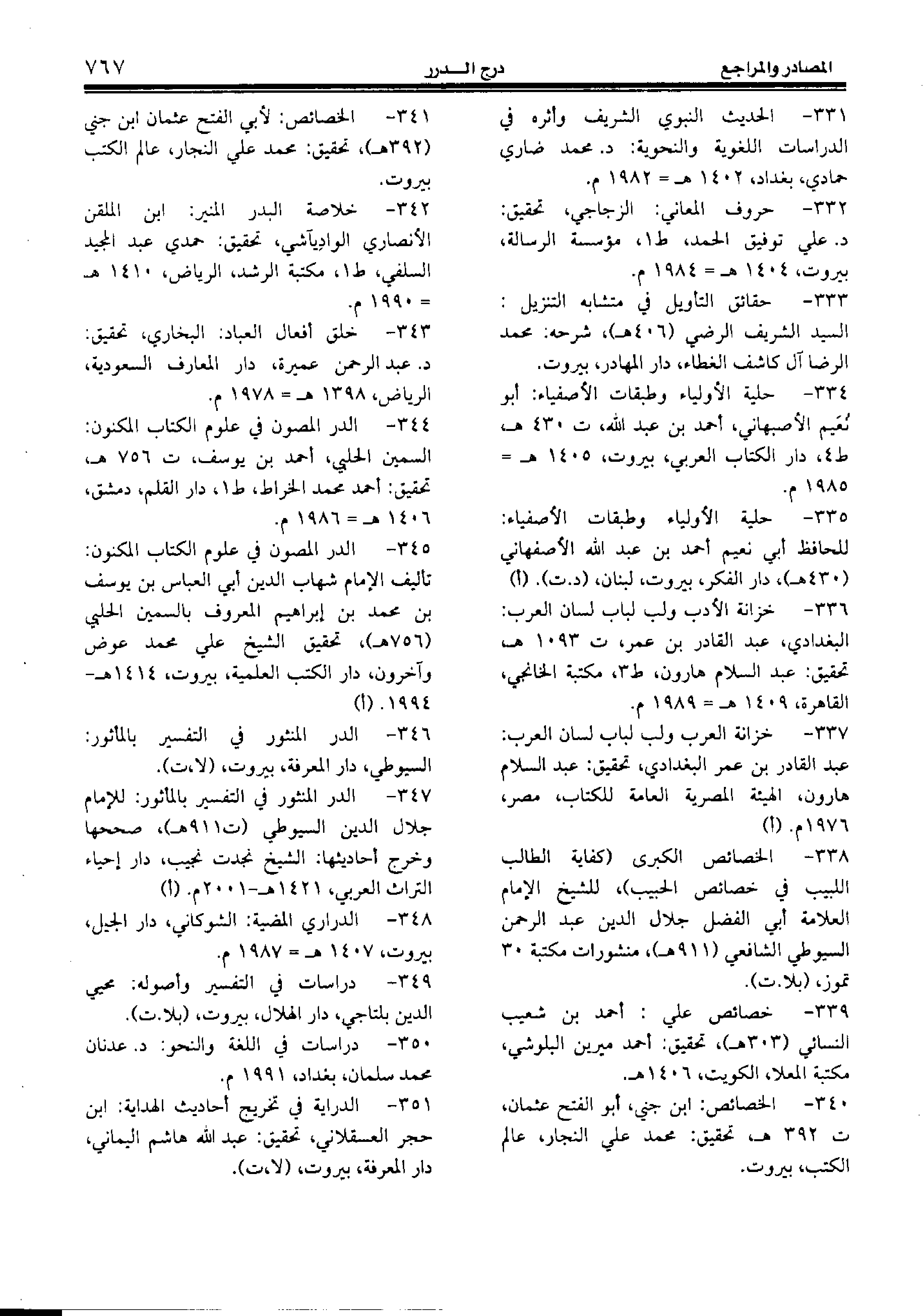 341 - الخصائص: لأبي الفتح عثمان ابن جني (392 هـ)، تحقيق: محمد علي النجار، عالم الكتب بيروت.